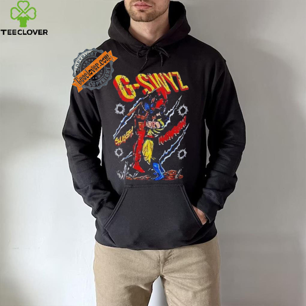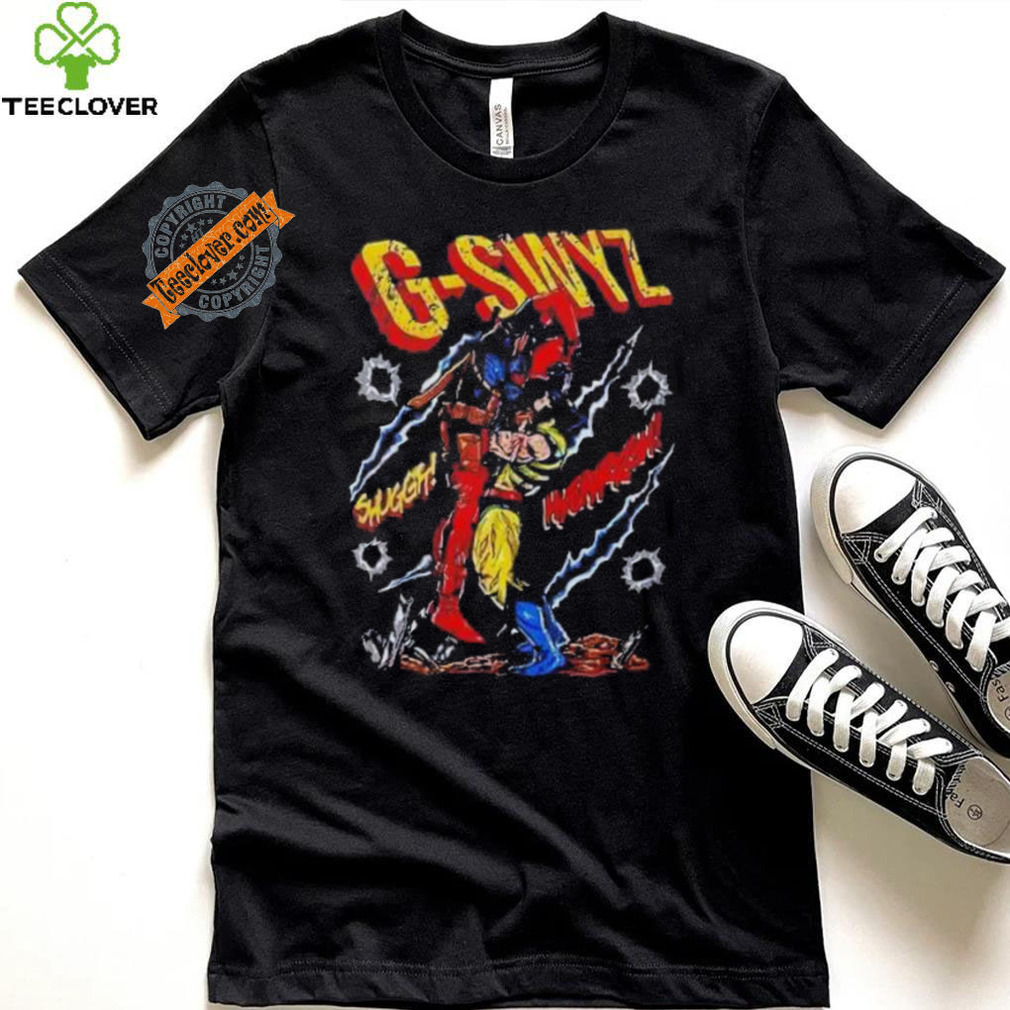 It’s a G Swyz Gunner shuggtt shirt kid’s movie that adults can enjoy. The only bad language is done in a cutesy way, with unintelligible sounds, kind of like the adults always talked in Peanuts cartoons. Ralph gets his mouth washed out with soap for it. The only violence is a scene where Ralph, while being picked on by a bully, snaps and fights back. It isn’t overly violent, and it isn’t glorified fighting, it’s just a couple of kids fighting in the snow like kids do. Ralph is crying throughout, so it is not some kind of ‘Aha, the victim has turned the tables with violence!’ I think the only other scene of violence is where Ralph fantasizes that he defends the house from burglars in the backyard with a BB gun. The scene is in black and white and sped up like a funny silent movie, and the burglars wear comical, old timey burglar outfits – striped shirt and black masks, like the Hamburglar. I think Ralphie shoots them in the butt as they try to climb back over the fence to get away.
