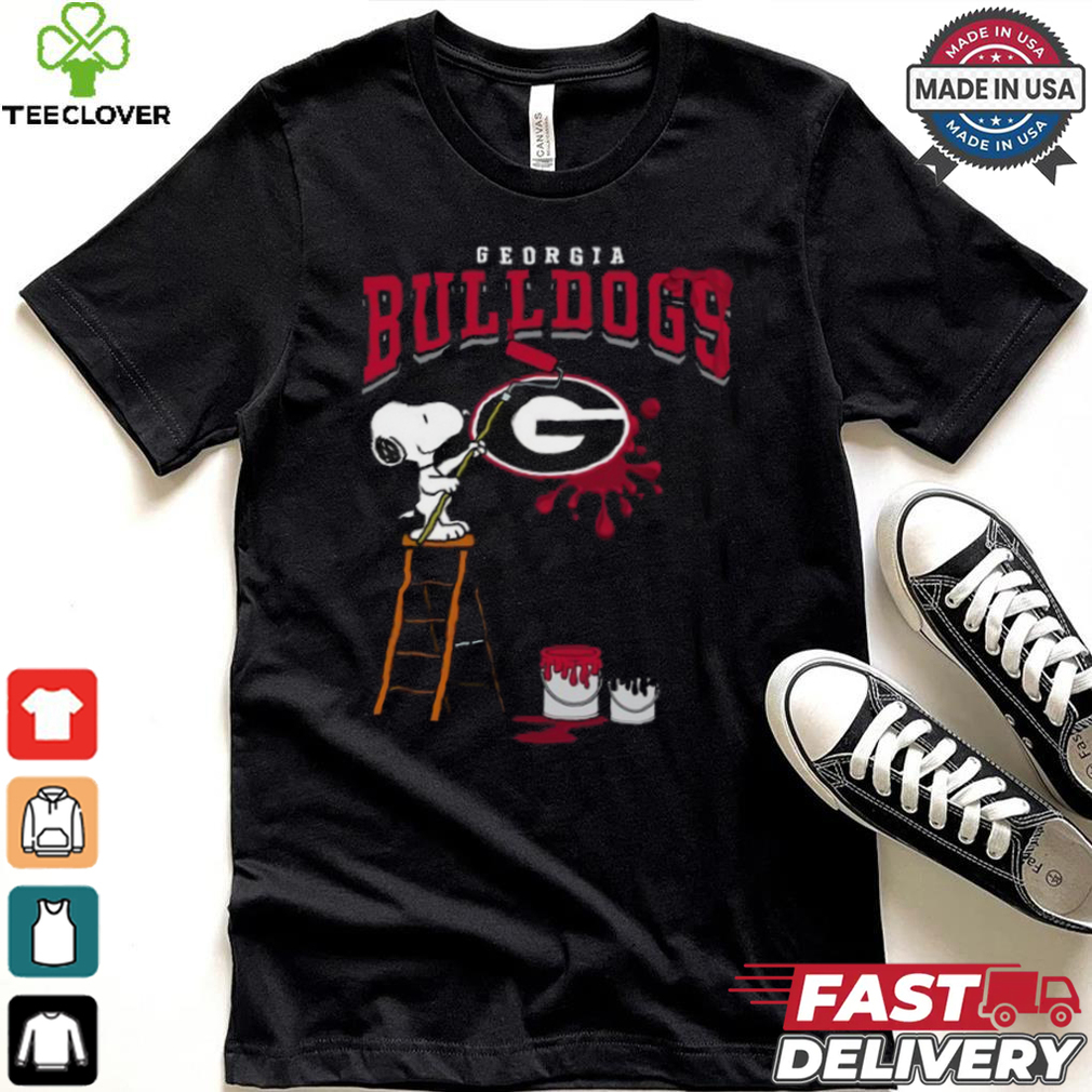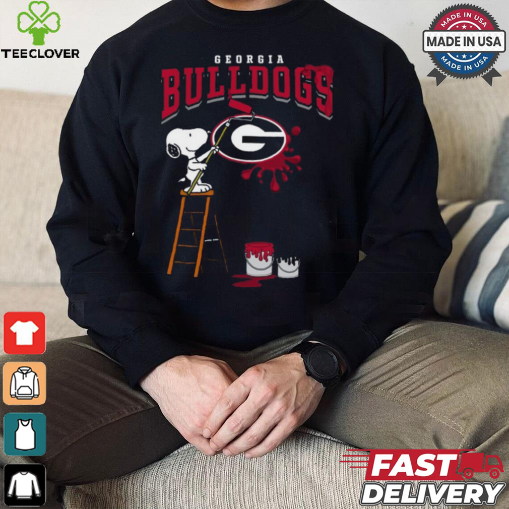 (The Bolshevik) sentinel slowly raised his head. But just at this moment the Georgia Bulldogs Snoopy Painting Shirt body of my friend rose up and blanketed the fire from me and in a twinkling the feet of the sentinel flashed through the air, as my companion had seized him by the throat and swung him clear into the bushes, where both figures disappeared. In a second he re-appeared, flourished the rifle of the Partisan over his head and I heard the dull blow which was followed by an absolute calm. He came back toward me and, confusedly smiling, said: “It is done. God and the Devil! When I was a boy, my mother wanted to make a priest out of me. When I grew up, I became a trained agronome in order. . . to strangle the people and smash their skulls? Revolution is a very stupid thing!” And with anger and disgust he spit and began to smoke his pipe.
