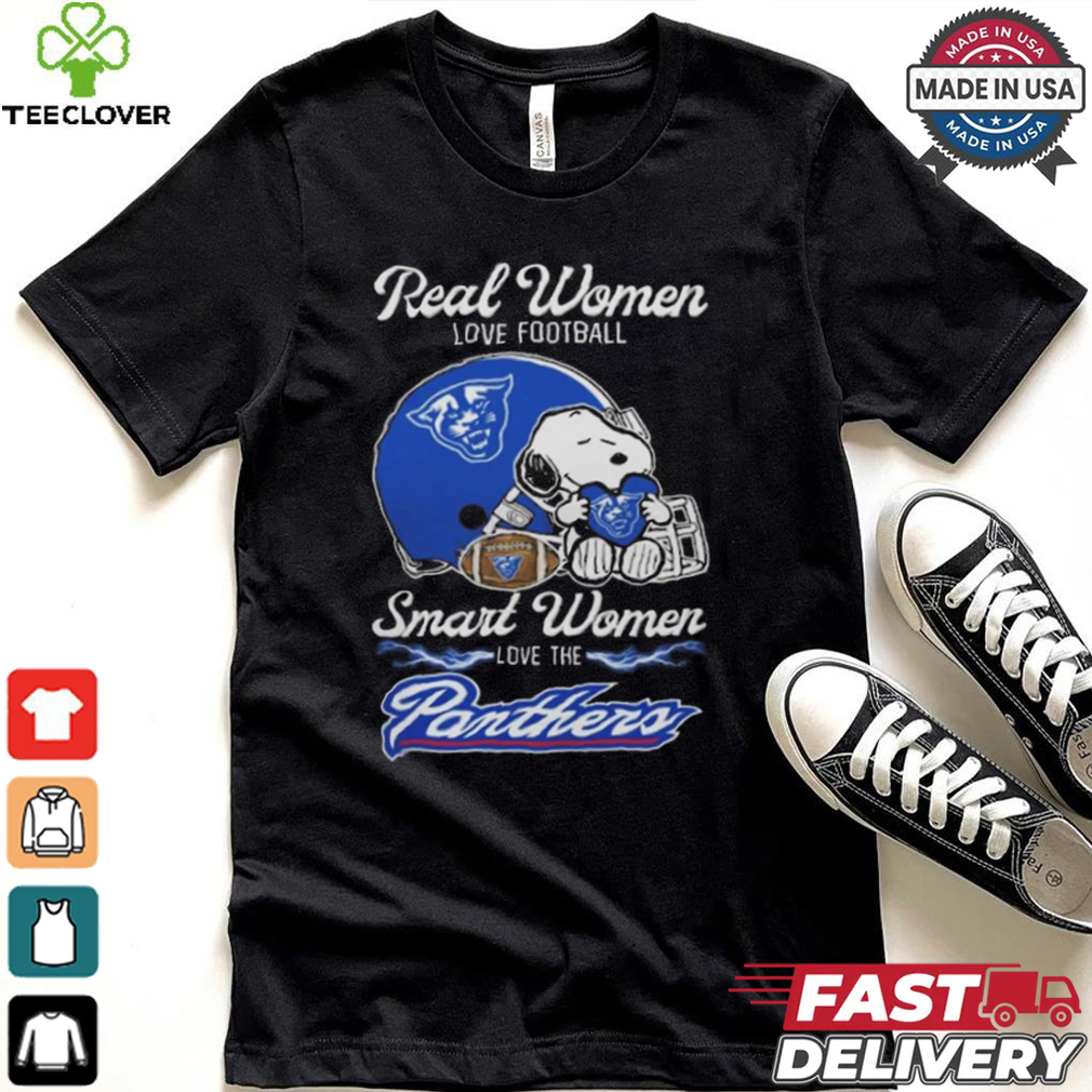 The easiest conversion would probably be to turn an offense or special teams player from a Georgia State Panthers x Snoopy Real Women Love Football Smart Women Helmet 2024 Shirt outside the line who runs with the ball into a non-kicking winger. Wingers are generally the fastest players in Rugby, they are usually positioned at the outside edge of the field, touch the ball least, but often have the most chance to make yards. NFL has some very good footwork coaching which would pay dividends there. English professional Rugby Union winger Christian Wade worked with an NFL footwork coach whilst still playing rugby and is now signed to the Atlanta Falcons in the NFL, he is expected to be used as a running back on the punt return special team if he makes it through to the match day squad.