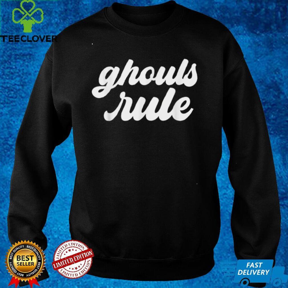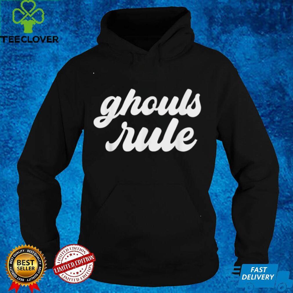 (Ghouls Rule Halloween T Shirt, Hoodie, Sweater, Vneck, Unisex and T-shirt)Wanda even cast a force field a la Violet. At the end, Wanda retreated to a peaceful mountain abode, not unlike Thanos in Avengers: Infinity War, and studied the Darkhold a la Doctor Strange. The appearance of this Ghouls Rule Halloween T Shirt following its debut in Agents of S.H.I.E.L.D. season four and subsequent appearance in Runaways season three begs the question as to how Agatha obtained it from Morgan le Fay. The bigger question posed by the last scene, though, is whether or not Billy and Tommy are alive after Wanda hears their voices; and, if so, how? Hopefully, Doctor Strange in the Multiverse of Madness answers this question. The other thing that was disappointing was Ralph. It turns out that he is just a nobody, and not Fox Quicksilver. Darn. Nonetheless, it was a thrilling finale to a thrilling series.