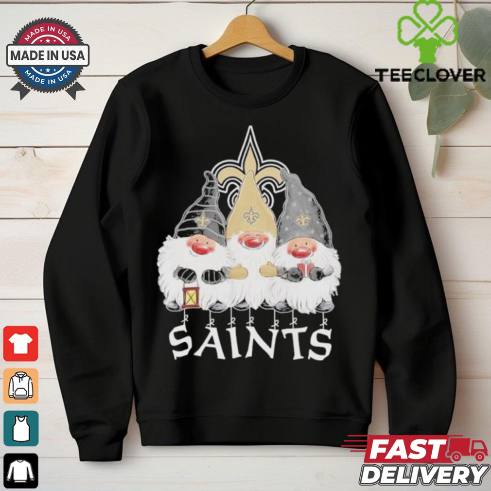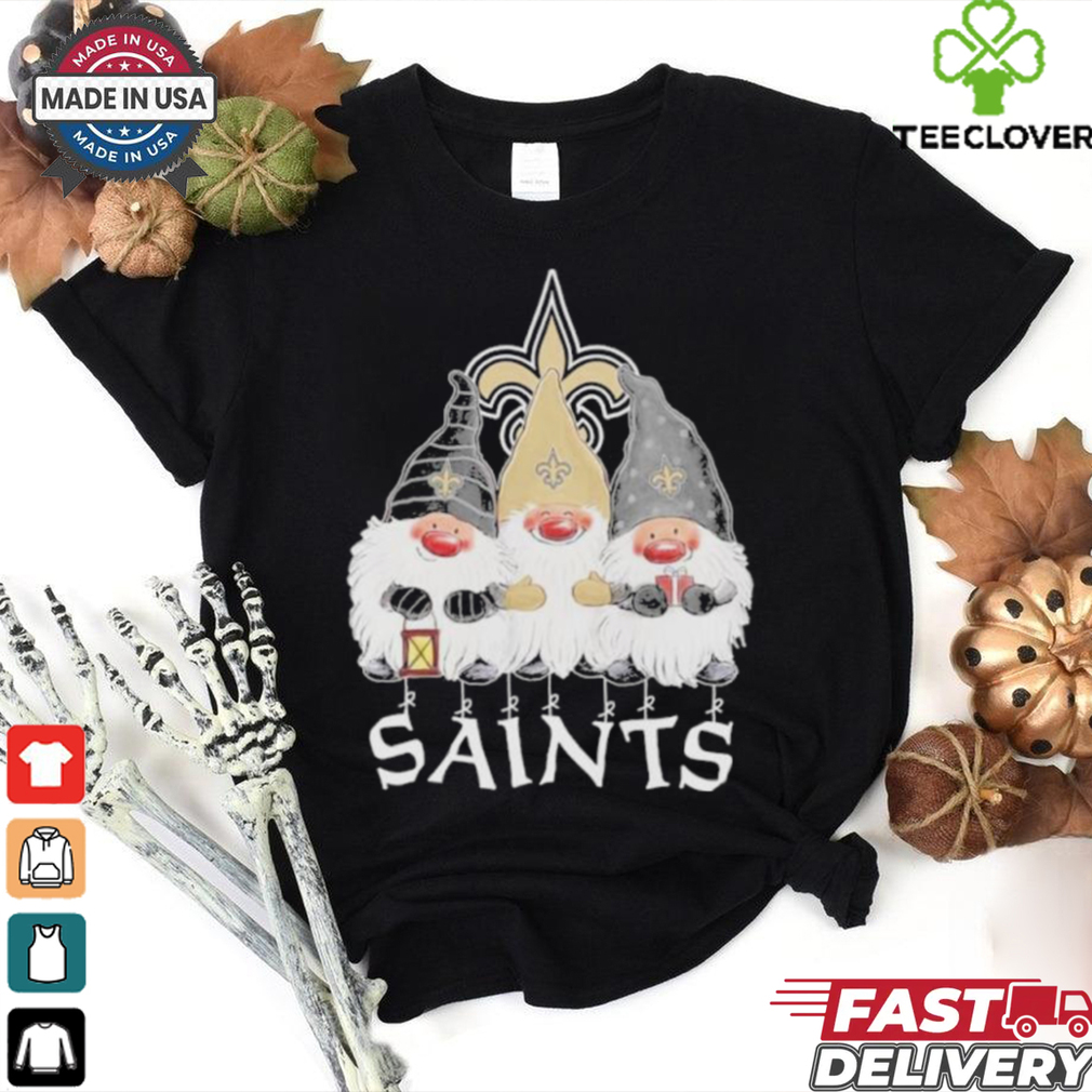 Much more as well as a lot Gnomes X New Orlean Saints Merry Christmas Shirt well-known T-shirts were actually tailored and also produced throughout the Psychedelic period, consisting of even more as well as extra home-made practices. Band T-shirts came to be an additional exceptionally well-known type of T t-shirt, inexpensively published as well as marketed at real-time jobs as well as gigs of the time, the practice proceeds to the current, band T shirts are actually as well-known as ever before, nonetheless the rate of all of them has actually increased considerably.