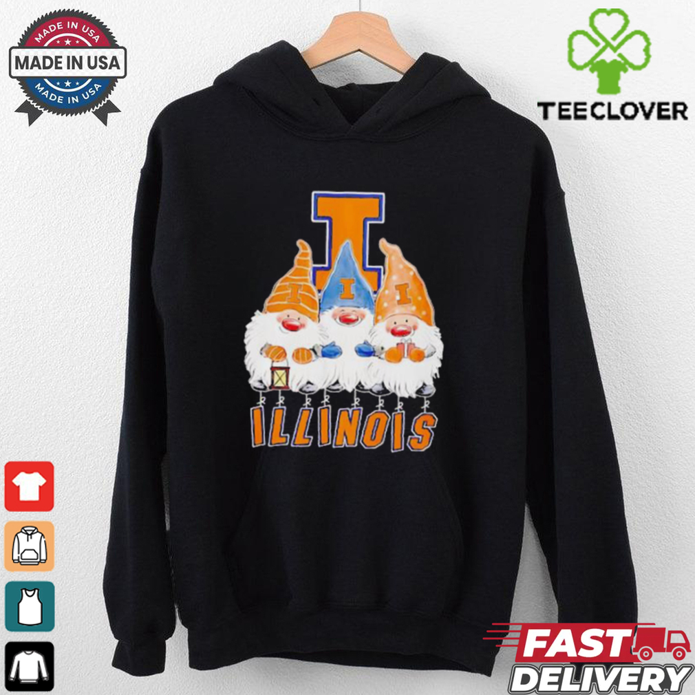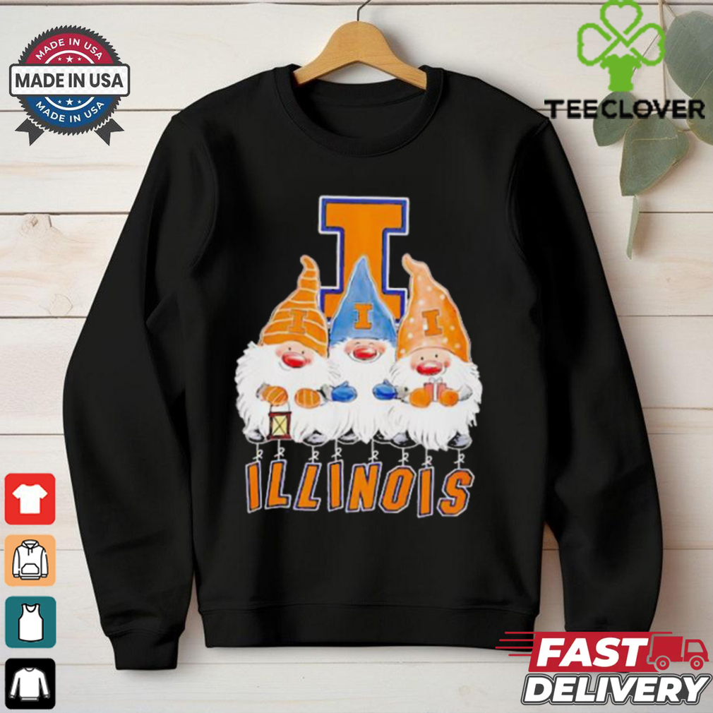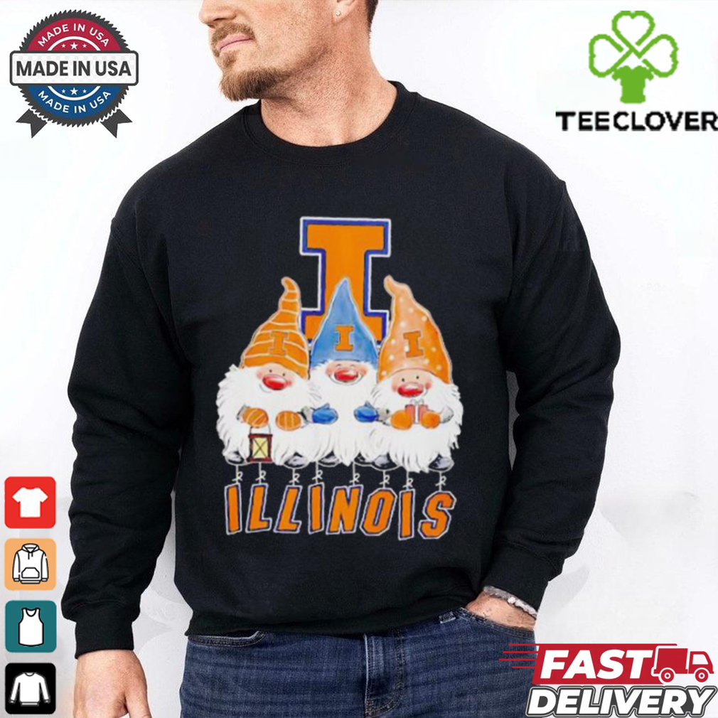 At the quite starting the tee was Gnomies Illinois Fighting Illini football Christmas shirt little bit even more than a part of under garments, a remarkably pragmatic one at that. The concepts pièce de résistance included a fall cover in the spine for convenience of make use of in the outdated privy. As cotton ended up being much more as well as much more extensively readily available, undergarments producers took the second to make an option to this pillar and also somewhat troublesome layout.