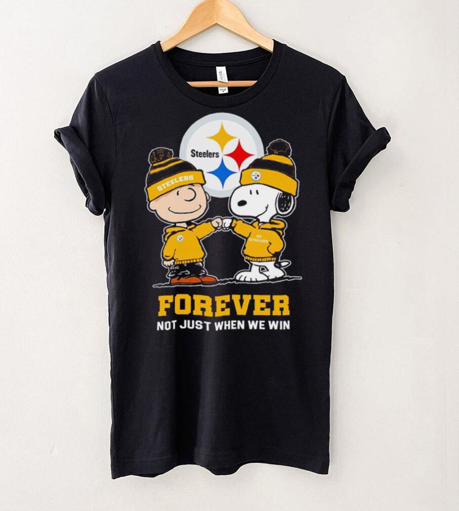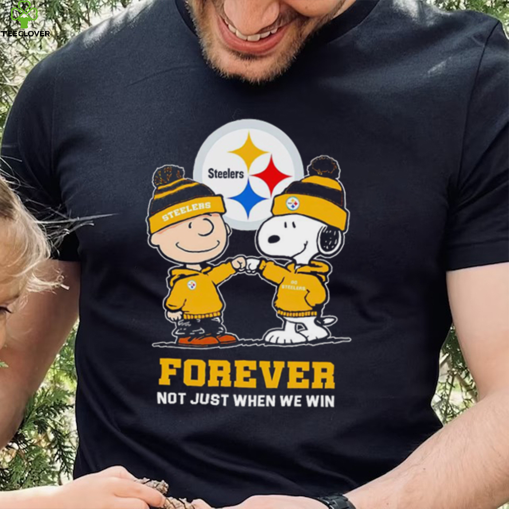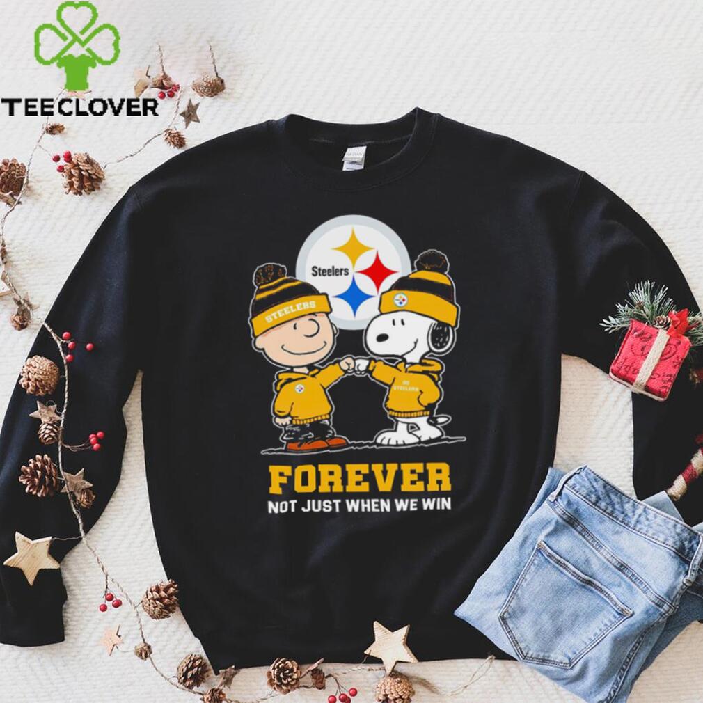 (The Bolshevik) sentinel slowly raised his head. But just at this moment the Go Steelers Peanuts Snoopy and Charlie Brown Pittsburgh Steelers Forever Not Just When We Win 2024 shirt body of my friend rose up and blanketed the fire from me and in a twinkling the feet of the sentinel flashed through the air, as my companion had seized him by the throat and swung him clear into the bushes, where both figures disappeared. In a second he re-appeared, flourished the rifle of the Partisan over his head and I heard the dull blow which was followed by an absolute calm. He came back toward me and, confusedly smiling, said: “It is done. God and the Devil! When I was a boy, my mother wanted to make a priest out of me. When I grew up, I became a trained agronome in order. . . to strangle the people and smash their skulls? Revolution is a very stupid thing!” And with anger and disgust he spit and began to smoke his pipe.