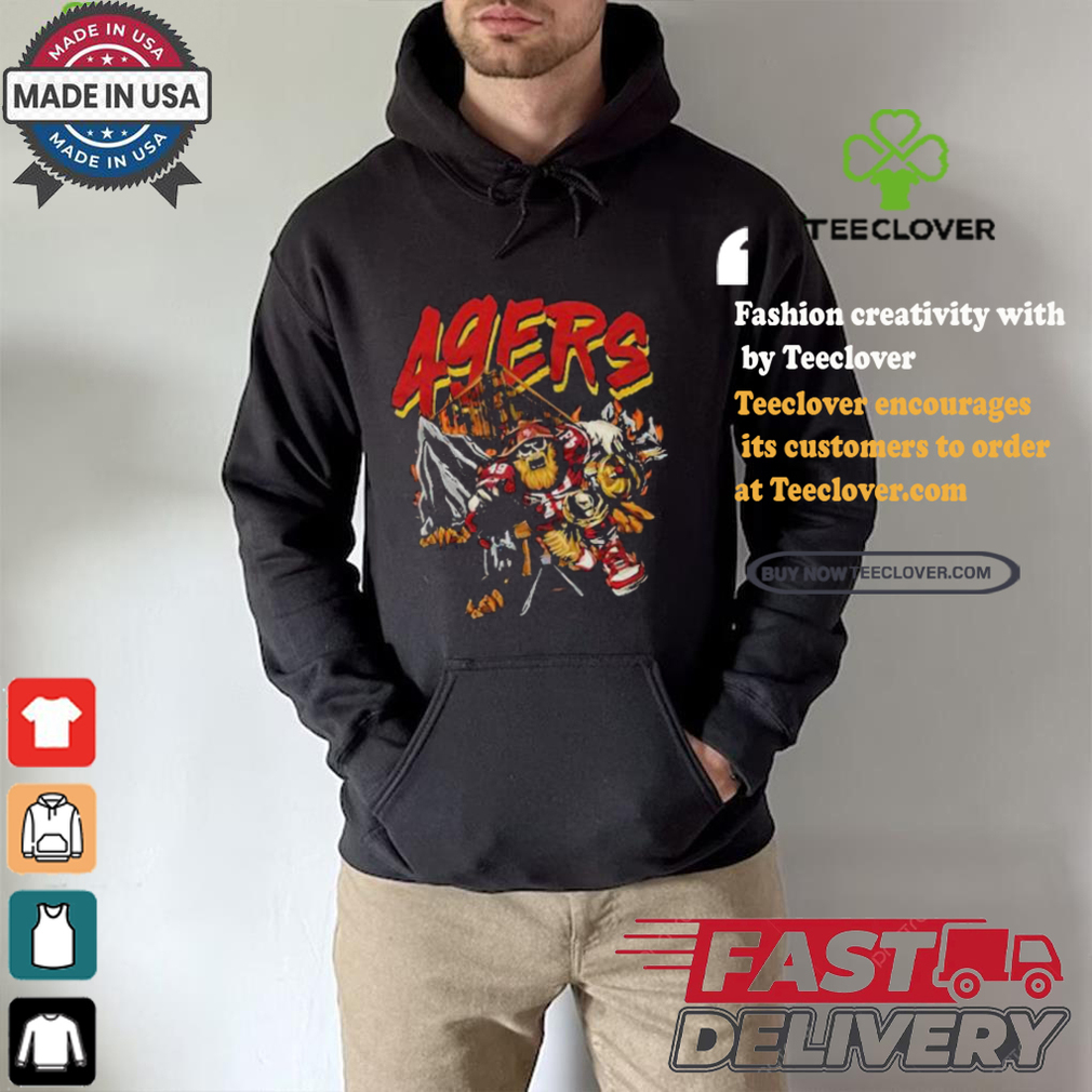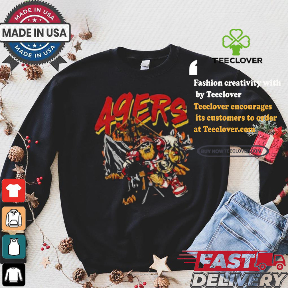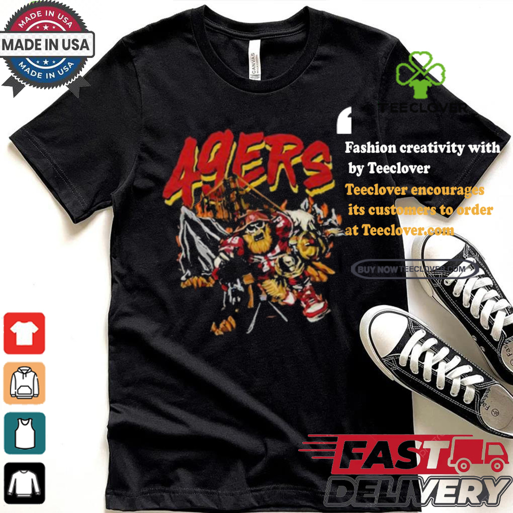 Beethoven turns his anger to Fate at having been dealt a Gold Miner San Francisco 49ers T shirt and now, this decision. In consolation, Fate allows Beethoven to travel back through his life in order to review it and make any changes that he wishes. Beethoven accepts this and they begin with Beethoven’s experiences as a child. Beethoven comes into his room while the young Beethoven has just been slapped by a tutor for failing to receive appointment to the Imperial Court. Beethoven turns to Fate and informs her that he did not need the hardships that he had faced, with his mother dead and a painful childhood. He requests that she remove the experience from his life. After being told that such a request would remove the inspiration for his sixth symphony, he changes his mind. Fate and Beethoven then go to one of Beethoven’s happier moments, meeting the composer Wolfgang Amadeus Mozart in the city of Vienna. Fate then reminds Beethoven of his “immortal beloved” Theresa and after experiencing a fond remembrance, Beethoven explains his reasons for needing to leave her.