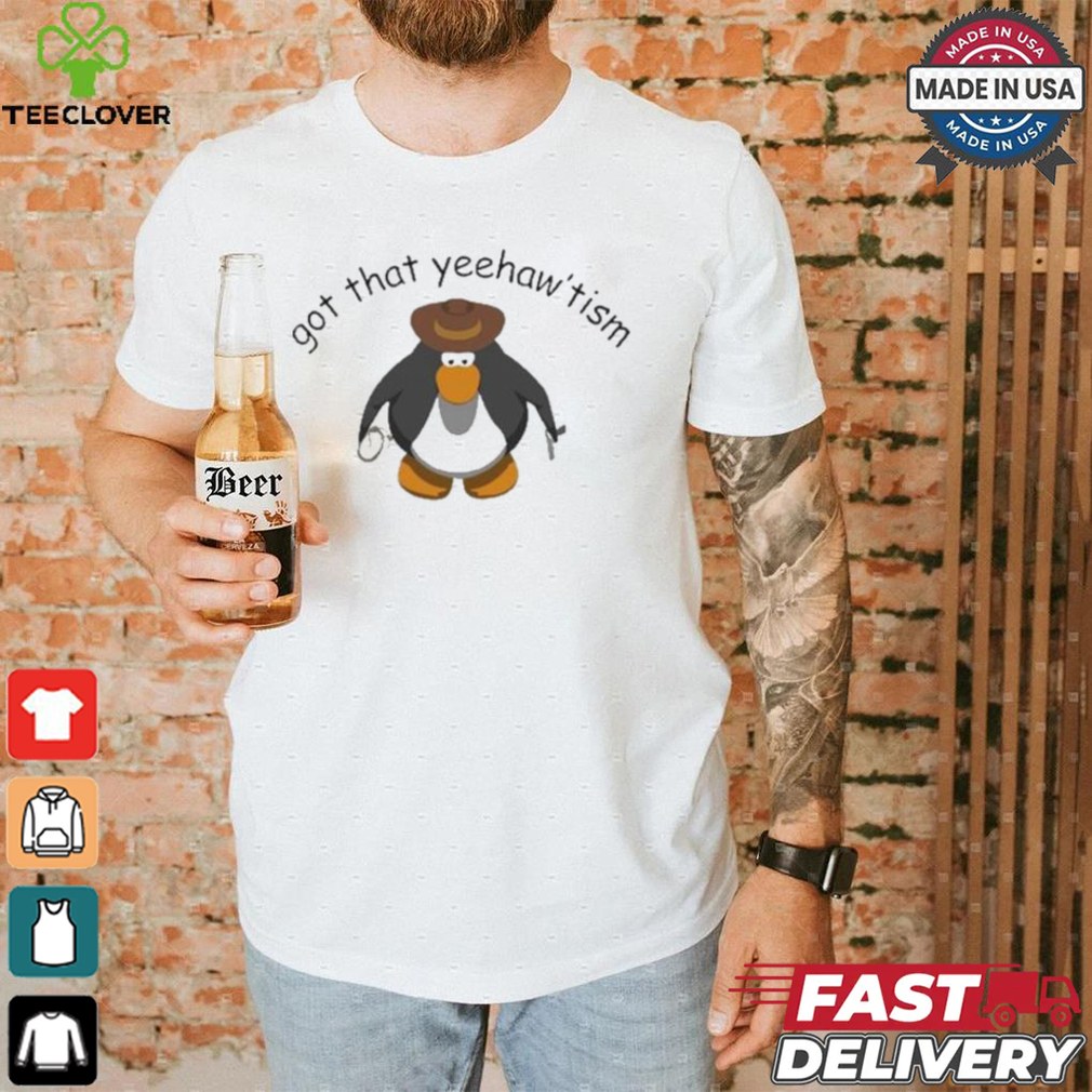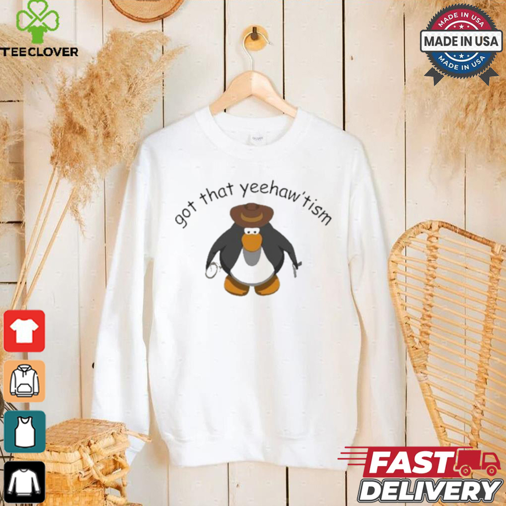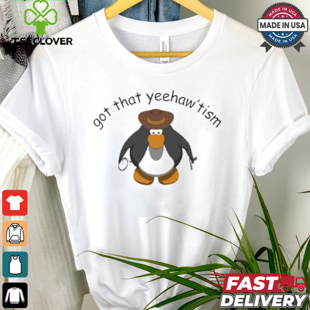 So not only did they actually have their homes both have Hanukkah and Christmas decorations, but these very different families they happily and joyously hosted celebrations for Got That Yee Haw Tism Penguin Cowboy T shirt. What’s key here though is that what is meant by “Christmas.” Many people associate this holiday as a traditional Christian-themed, religious holiday with various Christian themes, decor, etc.. But many other people associate the holiday with snowmen, winter weather, reindeer, hot chocolate, egg nog (often with rum), various evergreen trees (artificial or real) festooned with glittering ornaments, pretty gift boxes under the tree, etc., or a secular (with Pagan roots in Saturnalia) winter holiday just a few days after the annual winter solstice. In fact, it seems to be a holiday that many non-Christians and even non-theists celebrate.