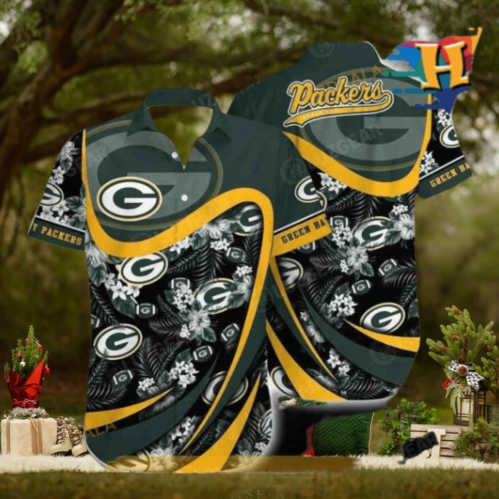 ()Green Bay Packers NFL Hawaiian Shirt Tropical Pattern Beach Shirts Gift For Sports Fans,