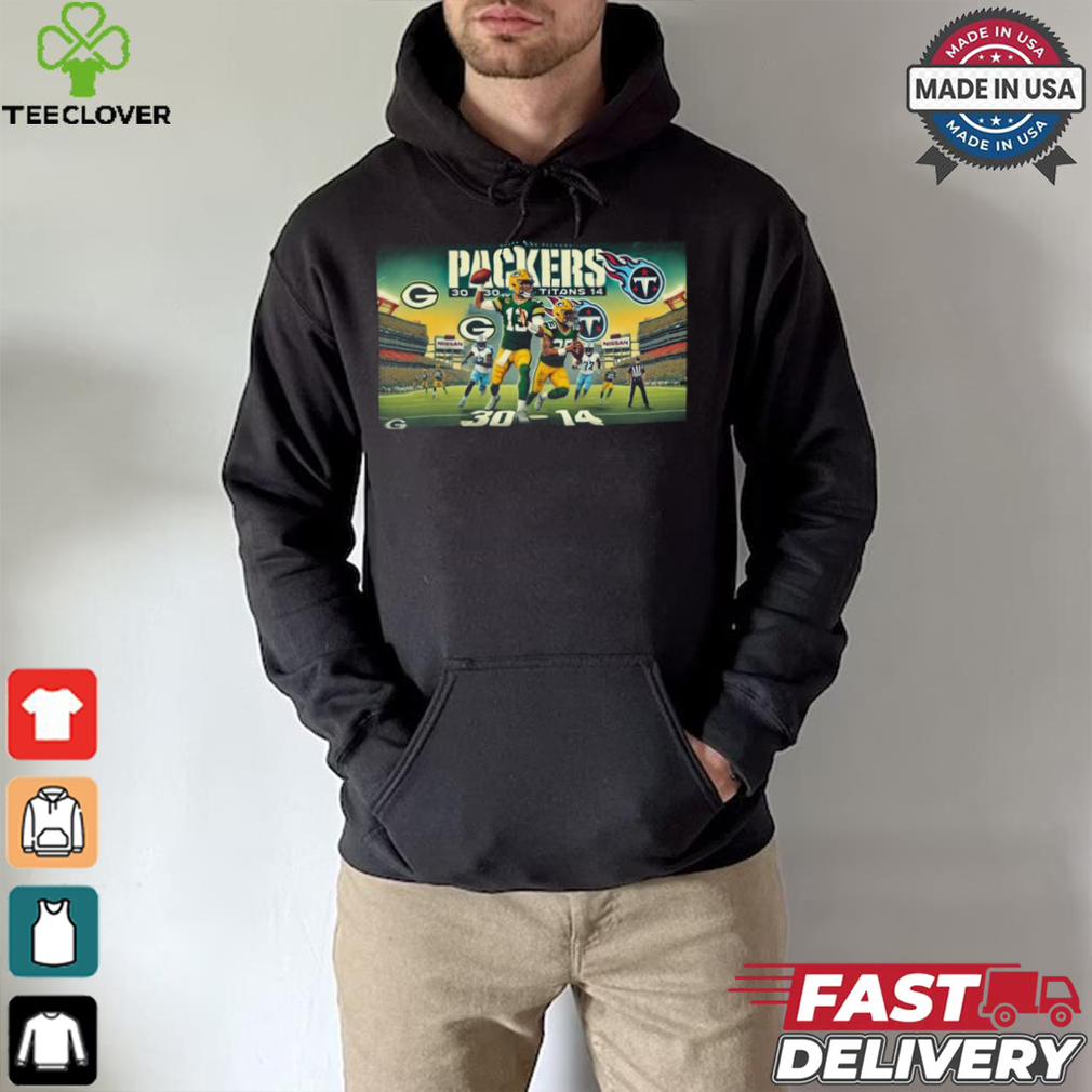At this point Mephistopheles returns and Beethoven informs the Green Bay Packers Wins 30 14 Titans 2024 NFL Week 3 Final Score Shirt that he will not allow his music to be destroyed. Desperate to receive the Tenth Symphony, Mephistopheles makes another deal: if Beethoven will give over only the Tenth Symphony, then Mephistopheles will not take the composer’s soul. After an appearance by Mozart’s ghost, Beethoven refuses this offer as well. As a final tactic, Mephistopheles points out the window to a young orphan and describes the tortures that she will receive if Beethoven refuses to hand over his music. Heartbroken, Beethoven agrees to hand over his Tenth Symphony. After Twist’s prompting, a contract is drawn up by Fate stating the following.