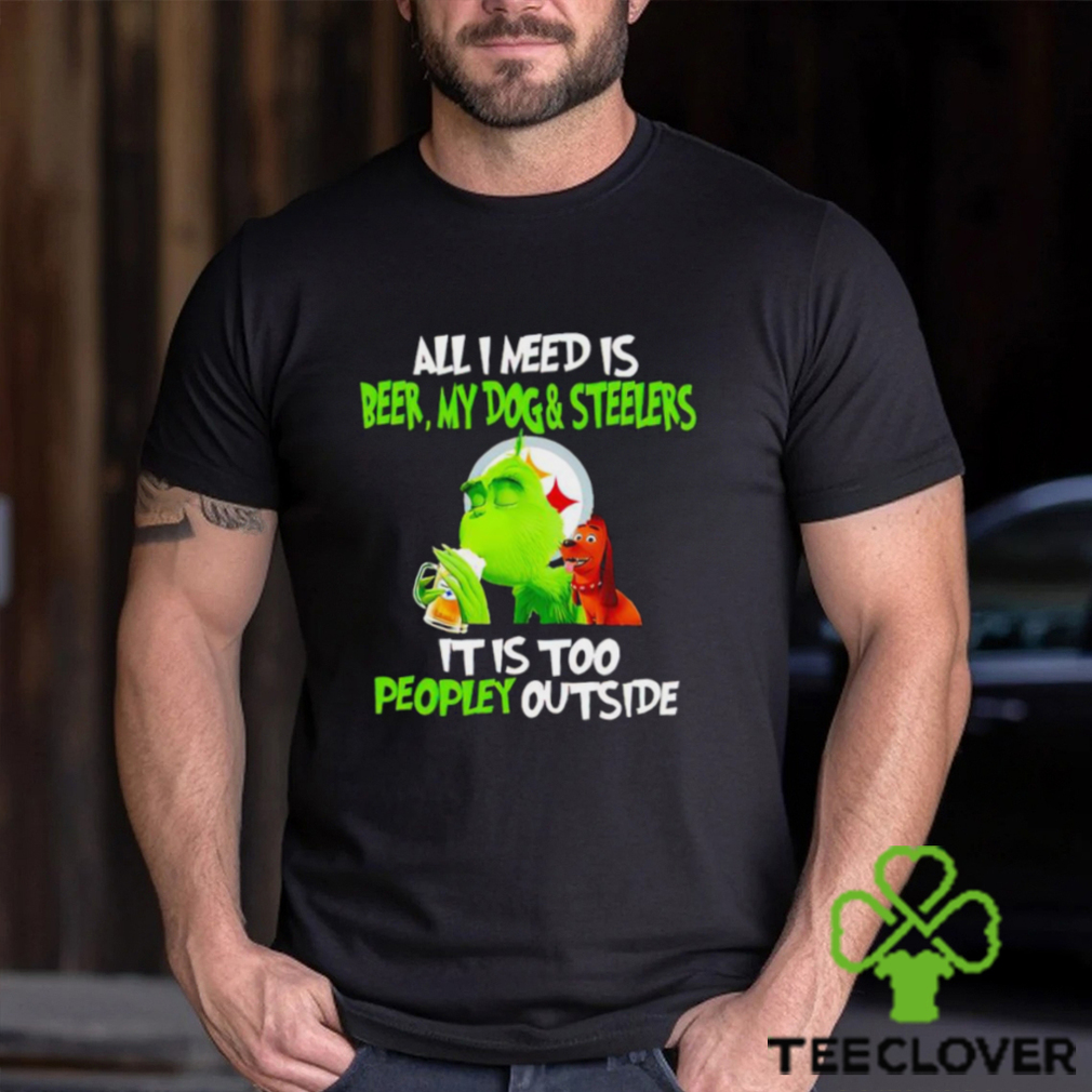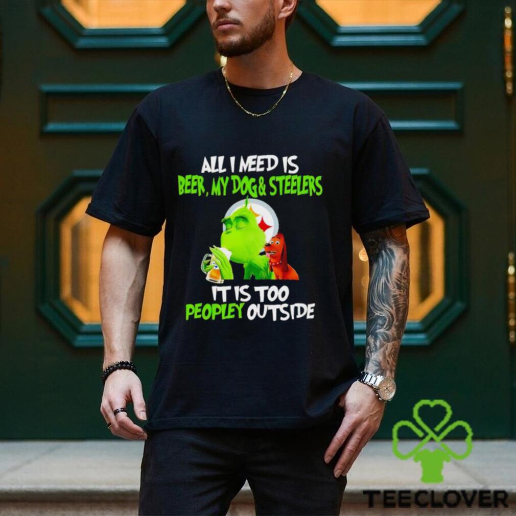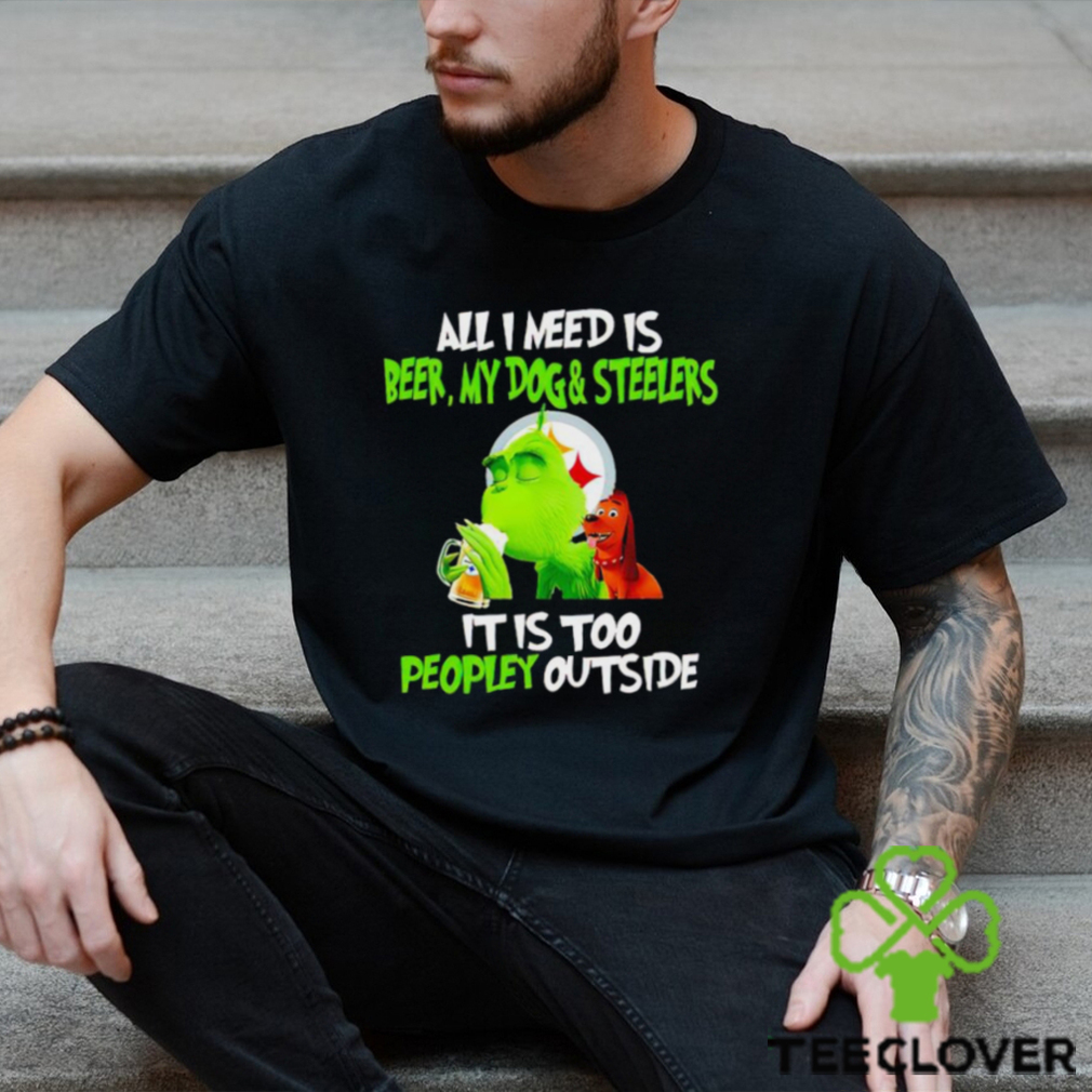 ()Grinch all I need is beer my dogs Pittsburgh Steelers it is too peopley outside shirt hoodie, tank top, sweater and long sleeve t-shirt