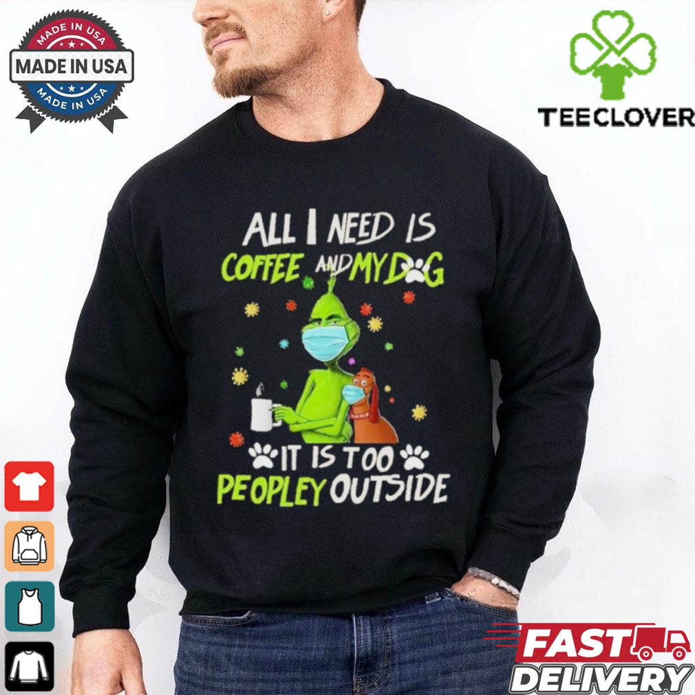 ()Grinch All I Need Is Coffee And My Dog It Is Too Peopley Outside Christmas Shirt hoodie, tank top, sweater and long sleeve t-shirt: best style for you