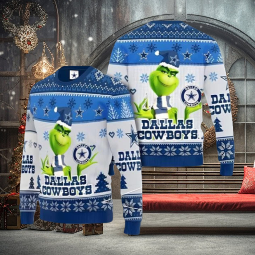 ()Grinch Dallas Cowboys Ugly Christmas Sweater Xmas 3D Printed Christmas Sweater Gift,
