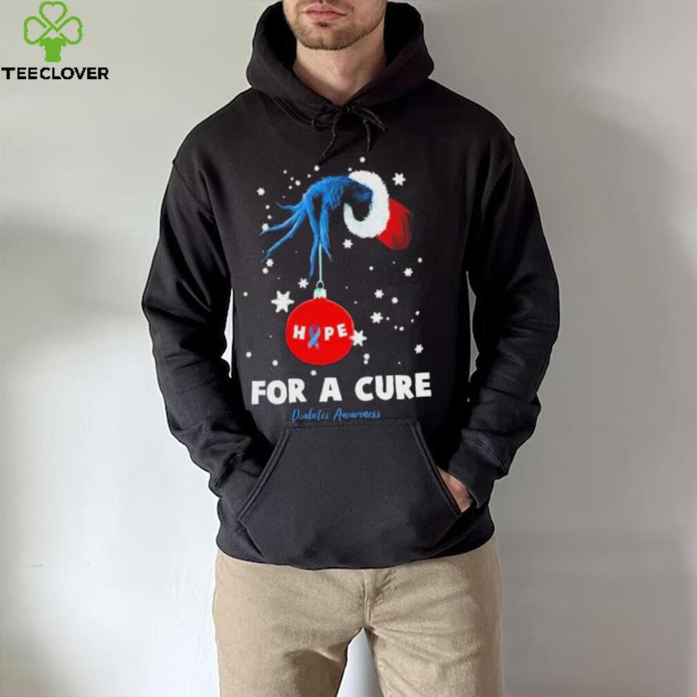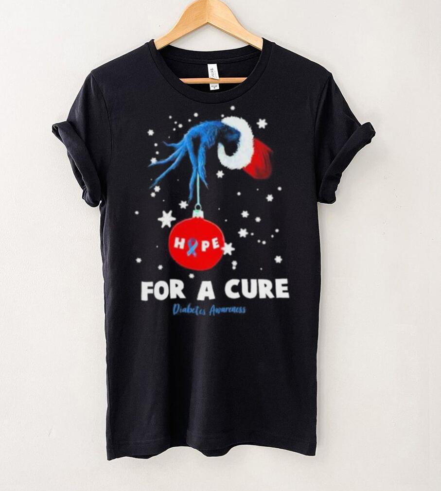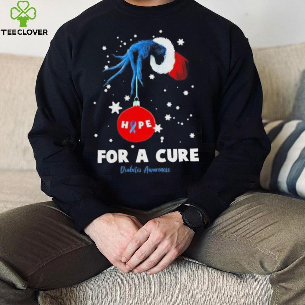 ()Grinch Hand Holding Ornament Hope For A Cure Diabetes Awakeness Christmas T Shirt