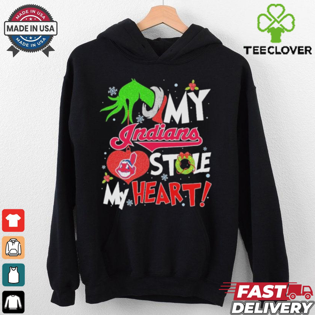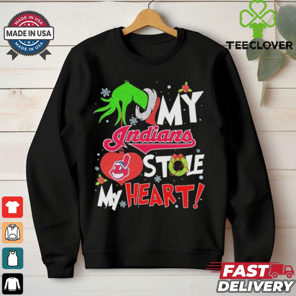 ()Grinch Hold My Cleveland Indians Stole My Heart Christmas Shirt hoodie, tank top, sweater and long sleeve t-shirt: best style for you