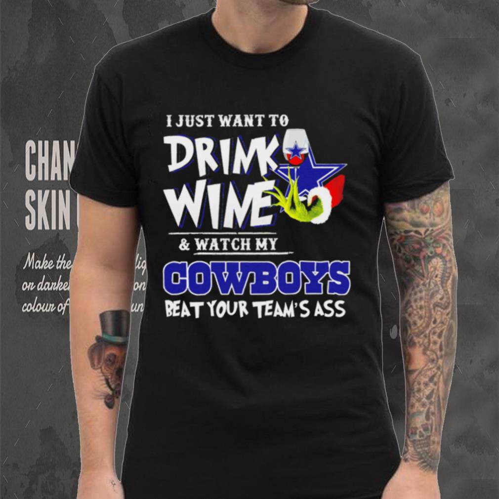 ()Grinch I just want to drink wine and watch my Cowboys beat your team’s ass shirt