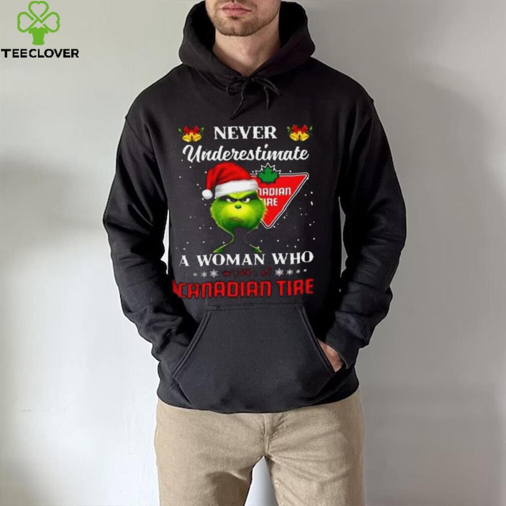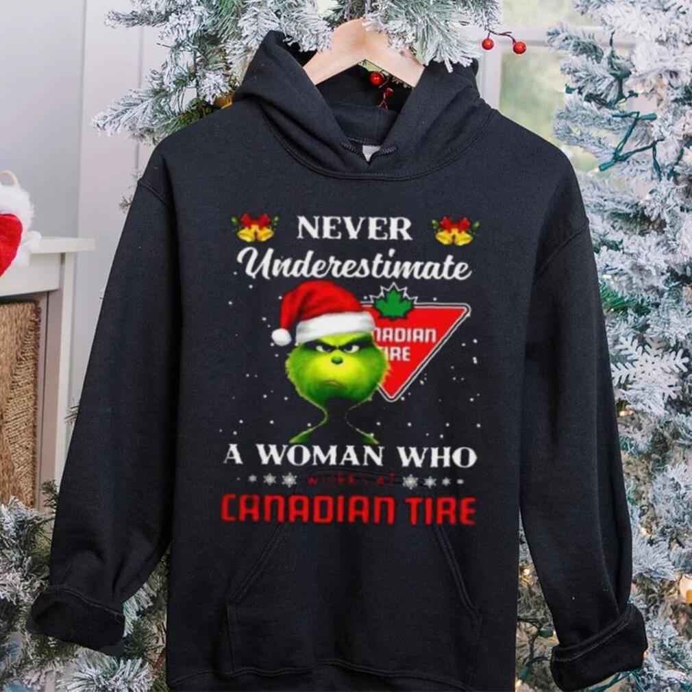 ()Grinch never underestimate a woman works at canadian tire t shirt