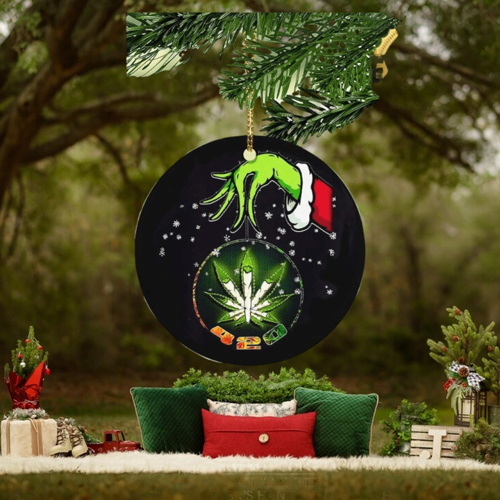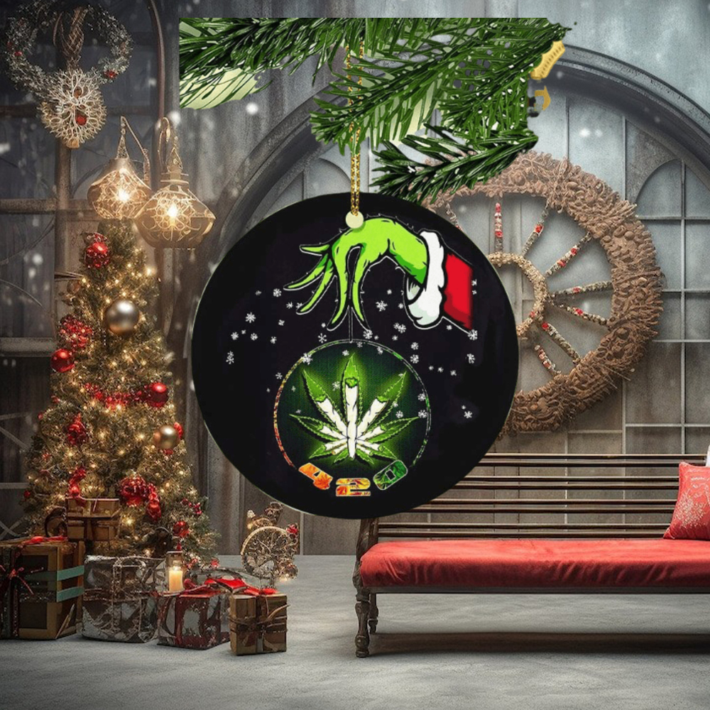 Best Grinch Santa Hand Holding Cannabis Marijuana Weed 420 Christmas Decorations Ornament
