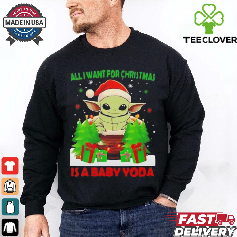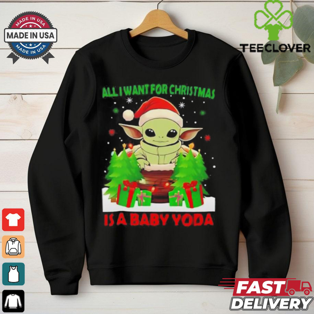 Fit bodies may carry out equipped or Grogu Santa all I want for Christmas is a baby Yoda Merry Christmas shirt semi-fitted guys’s garments somewhat properly. Opt for tiny dog collars (like exploded view dog collars) if you possess a quick back.Wide constructs must opt for traditional match t-shirts along with creases, preferably along with upright red stripes. Decide for traditional dog collars which are actually sizable sufficient to pull focus away coming from the midsection.