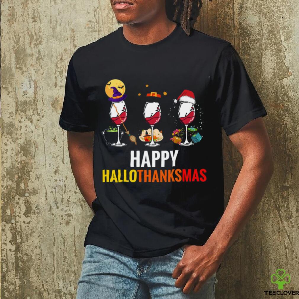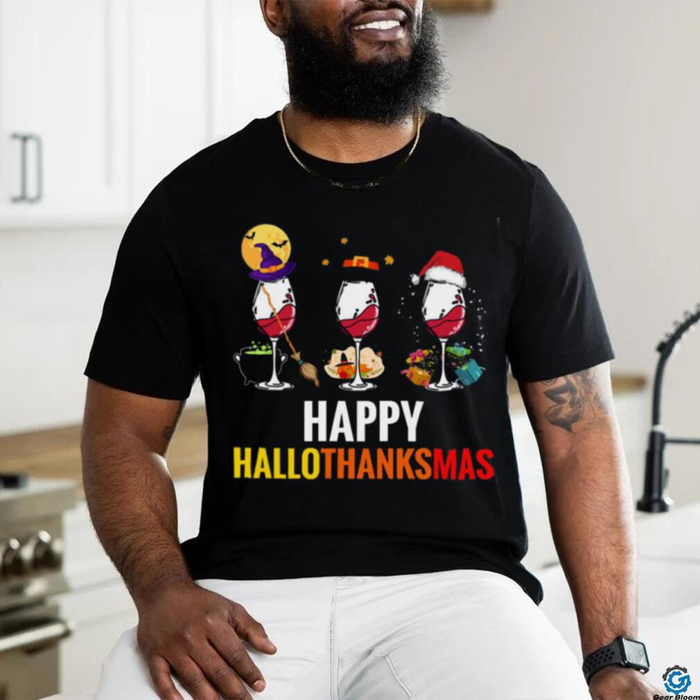 ()Happy Halloween Thanksgiving Christmas Hallothanksmas Unisex Sweatshirt, Hoodie, Sweater, Vneck, Unisex and T-shirt