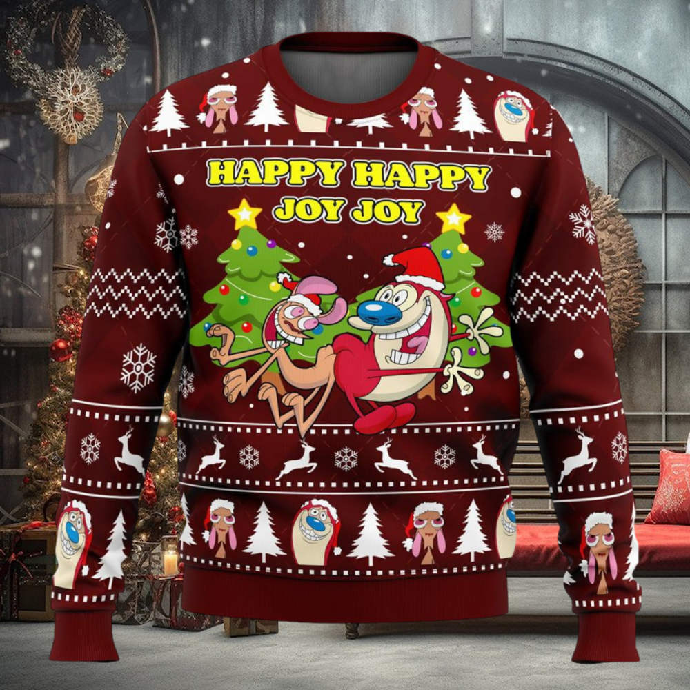 Best Happy Happy Joy Joy Ren And Stimpy Ugly Christmas Sweater