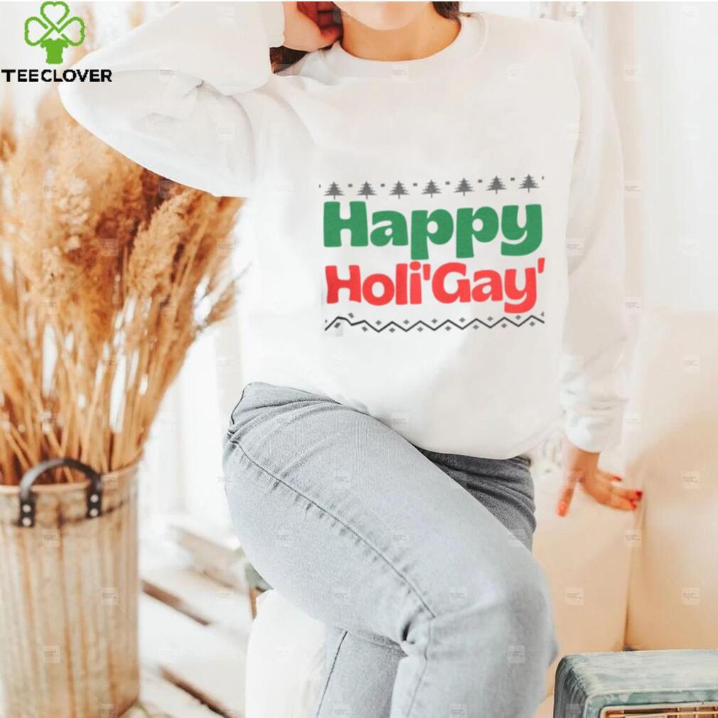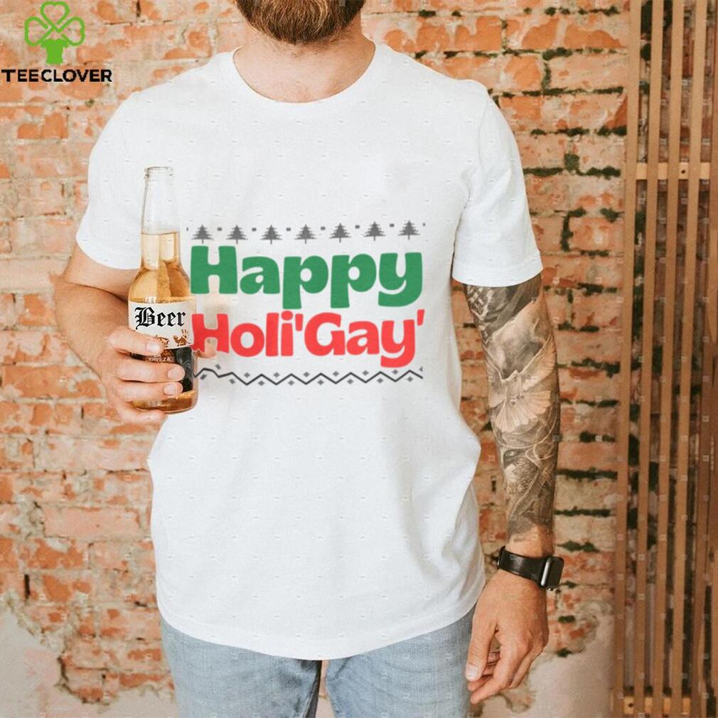 So not only did they actually have their homes both have Hanukkah and Christmas decorations, but these very different families they happily and joyously hosted celebrations for Happy HoliGAY Christmas T Shirt. What’s key here though is that what is meant by “Christmas.” Many people associate this holiday as a traditional Christian-themed, religious holiday with various Christian themes, decor, etc.. But many other people associate the holiday with snowmen, winter weather, reindeer, hot chocolate, egg nog (often with rum), various evergreen trees (artificial or real) festooned with glittering ornaments, pretty gift boxes under the tree, etc., or a secular (with Pagan roots in Saturnalia) winter holiday just a few days after the annual winter solstice. In fact, it seems to be a holiday that many non-Christians and even non-theists celebrate.