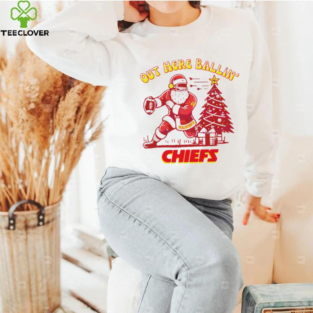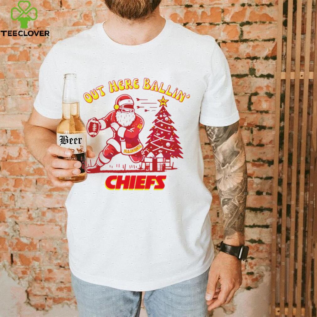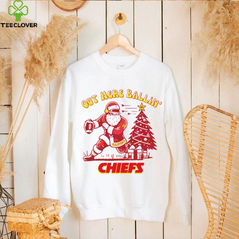 Happy Xmas Kansas City Chiefs football Santa Mahomes out here ballin’ Chiefs gift shirt