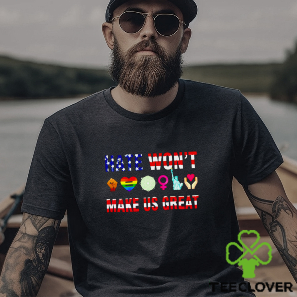 There is surely something is wrong with the hate won’t make us great Usa flag lgbt shirt of those who raise this kind of questions at all! Being politically and ideologically opposed does not mean an inveterate social and religious vengefulness. What was envisaged there is a certain kind of ideological framework for the country based on its age-old ethicality and prevent India from losing its identity in the flood waters of the anarchical and hegemony-anchored Western Culture. It is not because secular forces fight against ISIS or Al-Qaeda that secularists systematically despise Islam or its followers. Nor is it because India is engaged in a protracted conflict with Pakistan that India despises Pakistanis wholesale. Do understand that India has a very unique cultural ethos. All so, that the Western social ethos does only encouraging baser instincts of people and subtly acquires power over them in the name of controlling the consciously unleashed waywardness in the name of law.