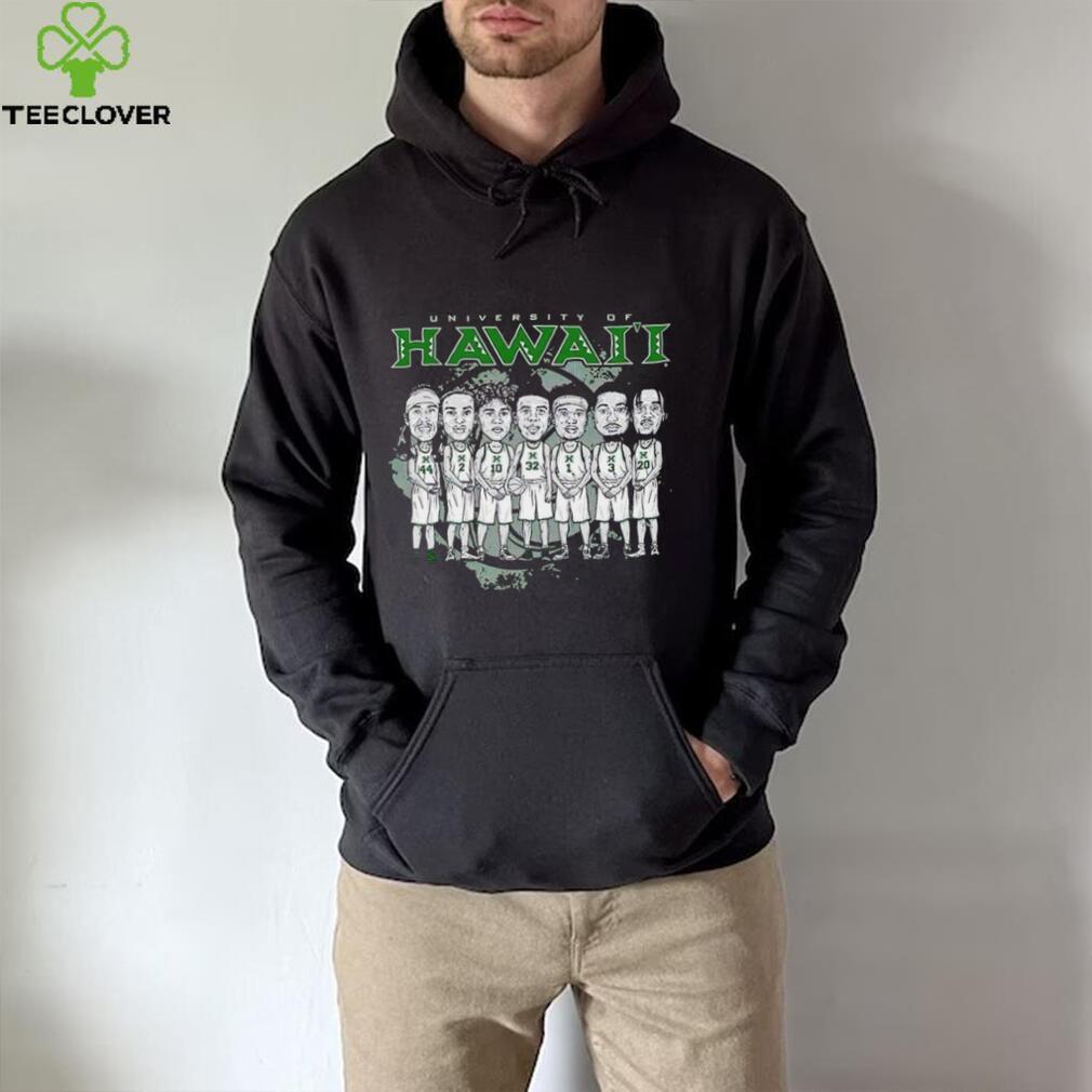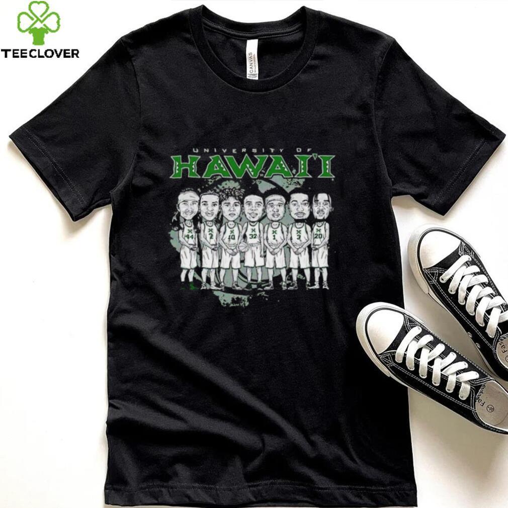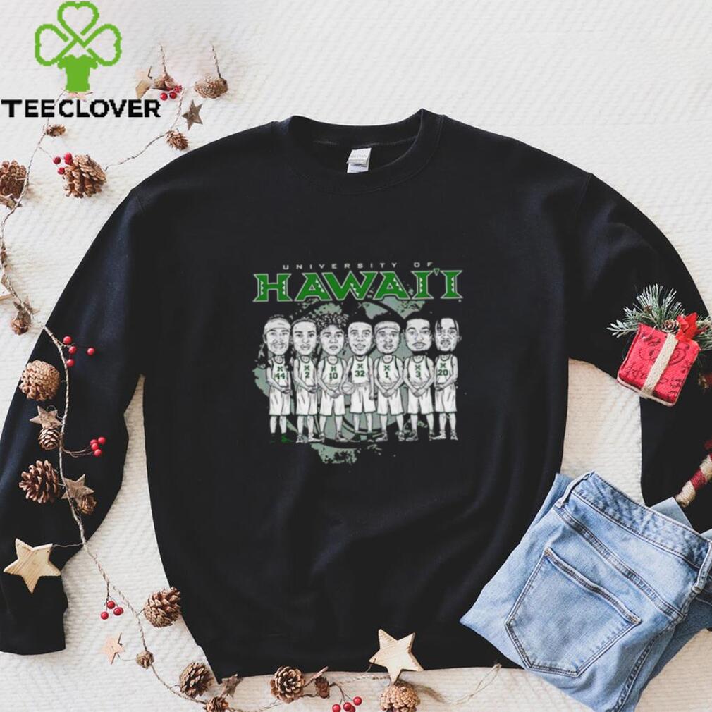 So not only did they actually have their homes both have Hanukkah and Christmas decorations, but these very different families they happily and joyously hosted celebrations for Hawaii caricature NCAA Men’s Basketball team shirt. What’s key here though is that what is meant by “Christmas.” Many people associate this holiday as a traditional Christian-themed, religious holiday with various Christian themes, decor, etc.. But many other people associate the holiday with snowmen, winter weather, reindeer, hot chocolate, egg nog (often with rum), various evergreen trees (artificial or real) festooned with glittering ornaments, pretty gift boxes under the tree, etc., or a secular (with Pagan roots in Saturnalia) winter holiday just a few days after the annual winter solstice. In fact, it seems to be a holiday that many non-Christians and even non-theists celebrate.