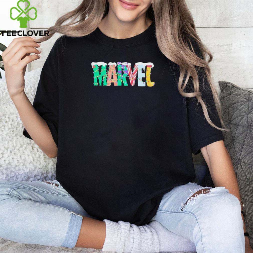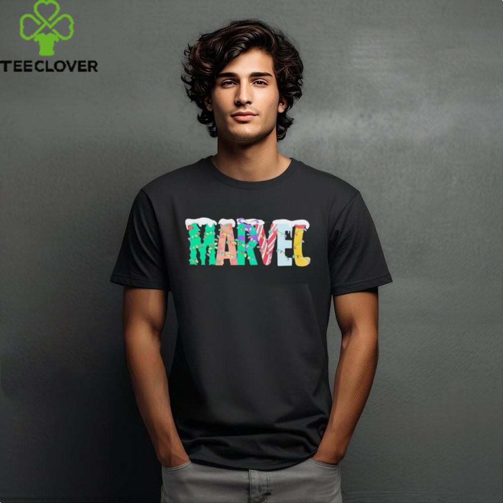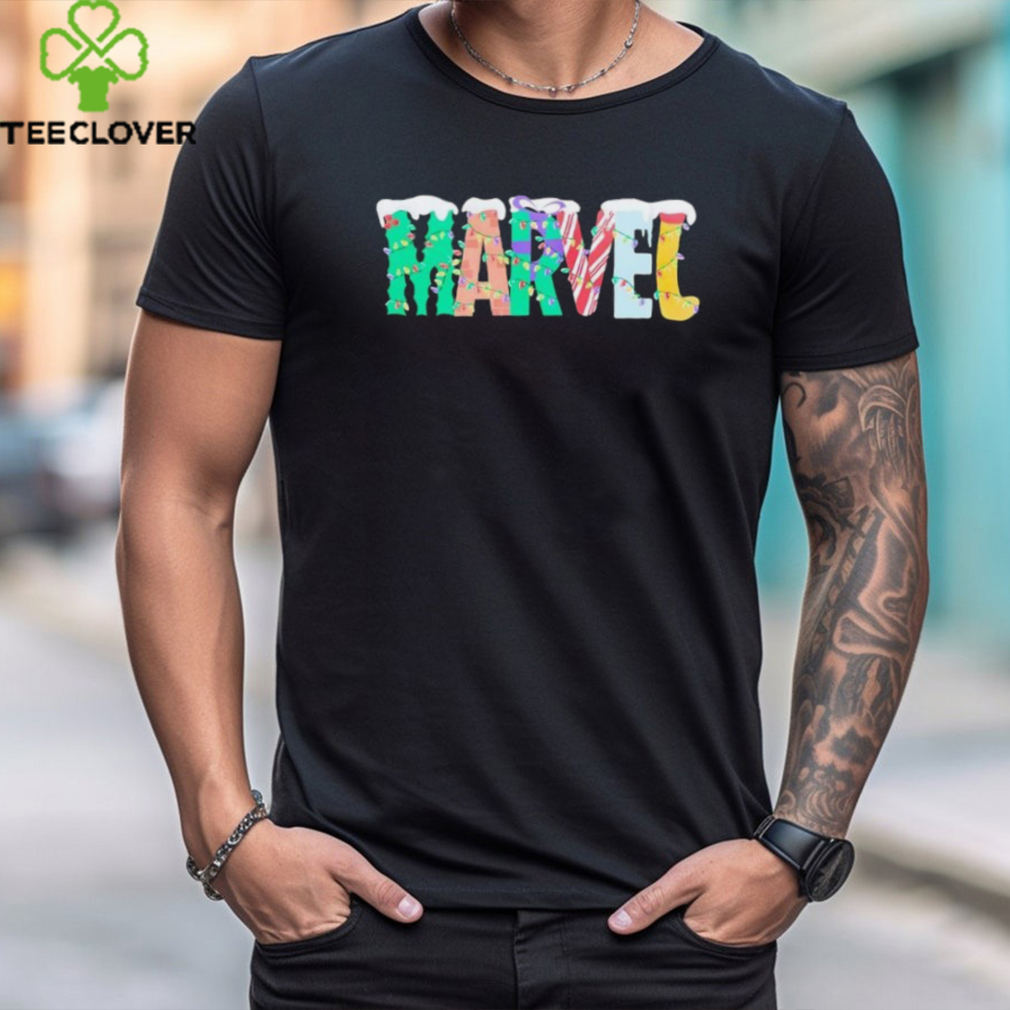 I left him and we Holiday Marvel Logo Christmas Light shirt wandering through the flea market but inside I couldn’t wait to go back and get him. My roommate had no say since we were in no relationship (he’s gay) and it was my apartment that he was staying at. As we left I made a beeline for that kitten. “If he’s still there I’m taking him home” He was indeed still there only this time when I called “kitty” he quickly turned to me…it was destiny “See! He loves me already too!” I yelled. I paid the $15 adoption fee. Signed a contract to get him vaccinated and fixed and purchased all the other kitty needs.