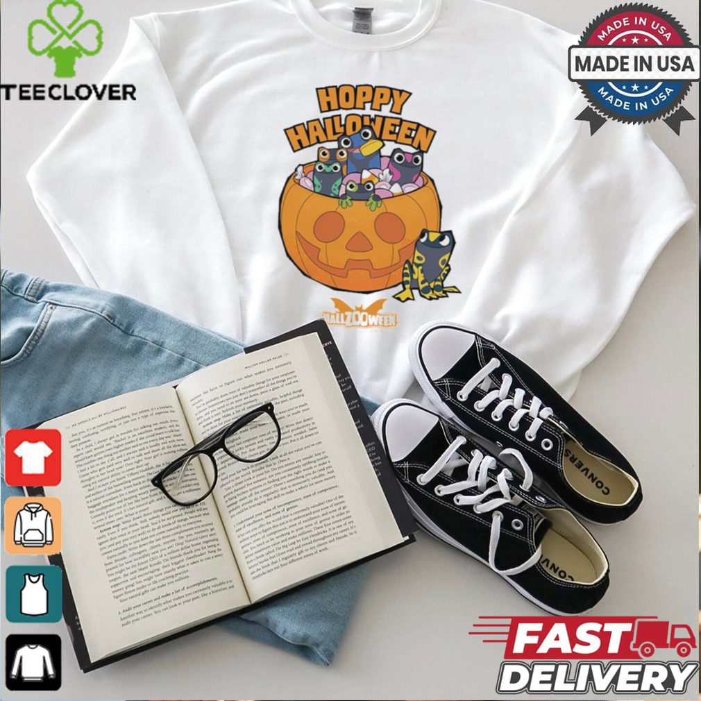 My Hoppy Halloween 2024 Hallzooween t shirtfelt sorry for him but wasn’t sure this timid kitten was right for a household with kids, so he moved a step over to the next cage full of a litter of active kittens. Then, out of the corner of his eye, he noticed that tiny 6-week-old shy kitten emerge from his hiding place and pick up a toy mouse with his teeth.