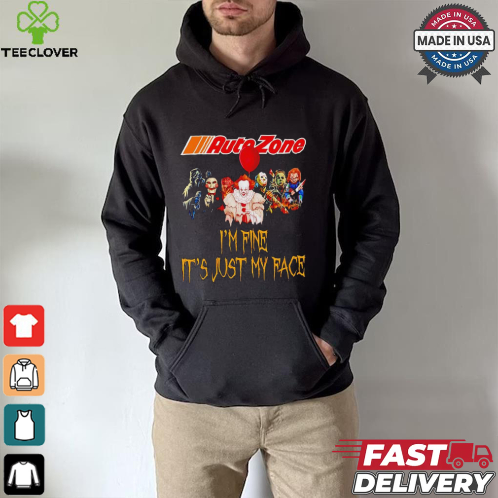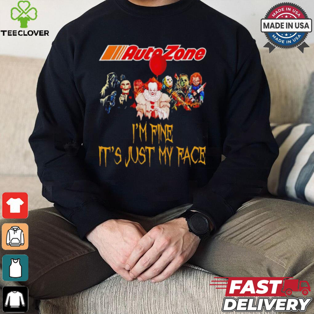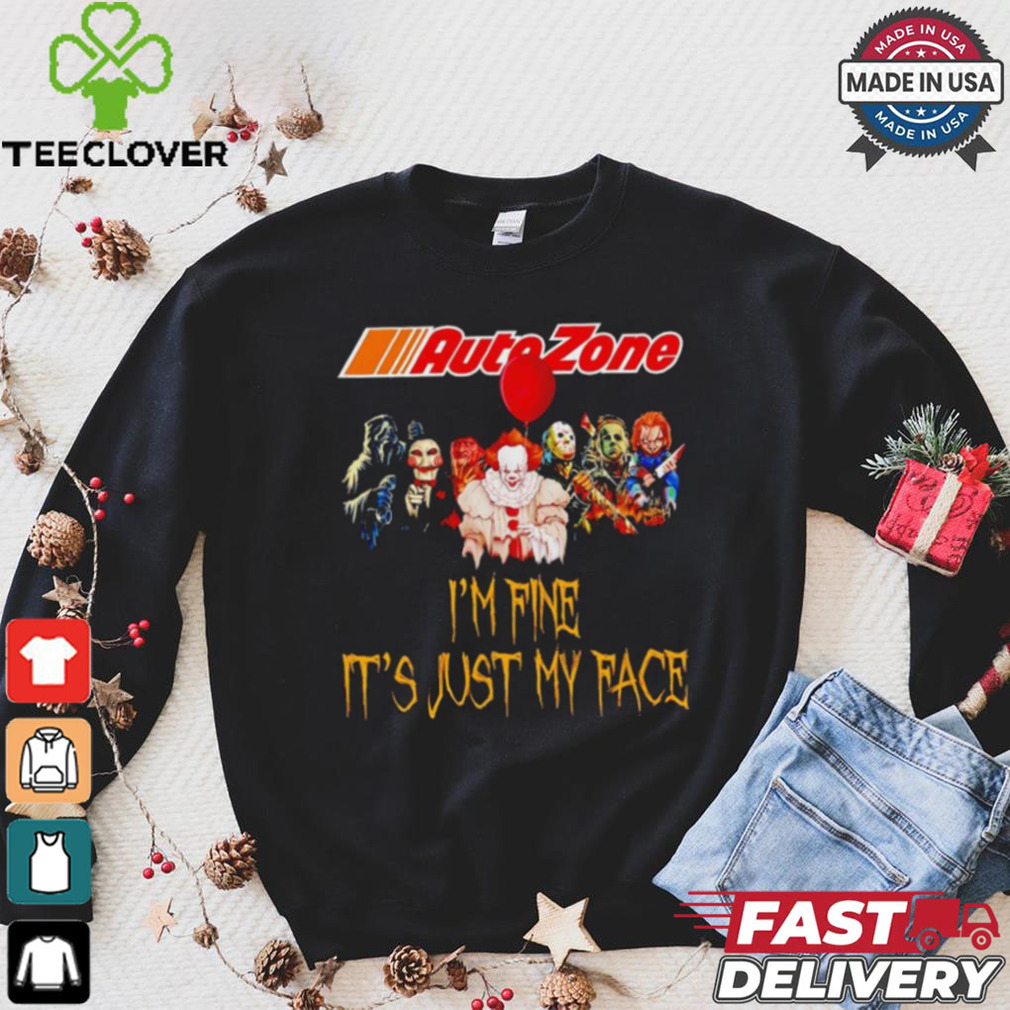 ()Horror movies Auto Zone I’m fine it’s just my face Halloween shirt