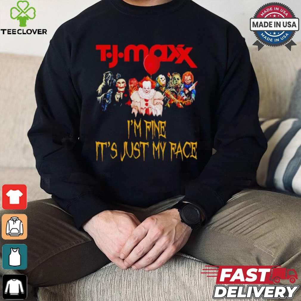 Horror movies TJ Maxx I’m fine it’s just my face Halloween shirt