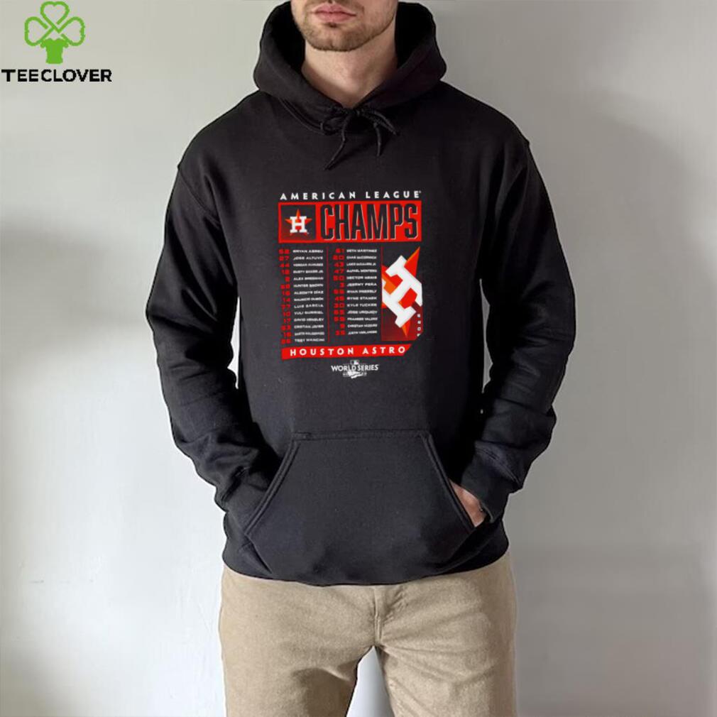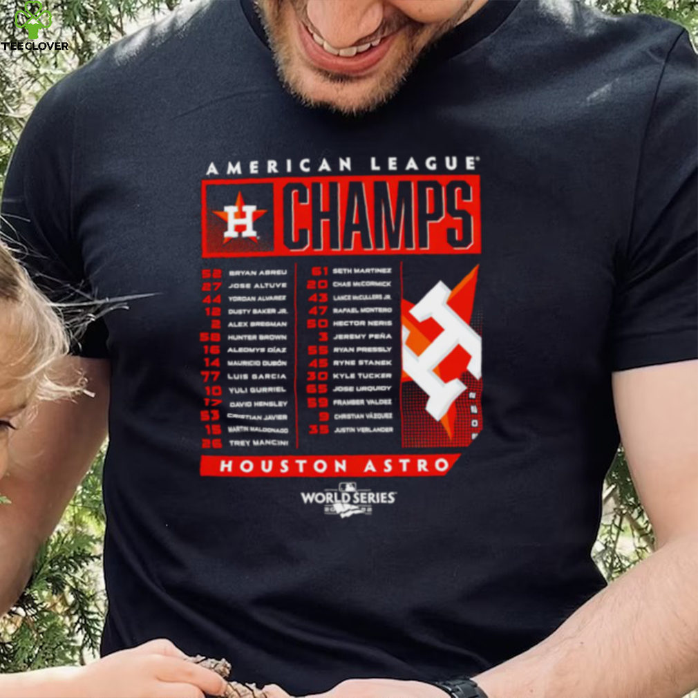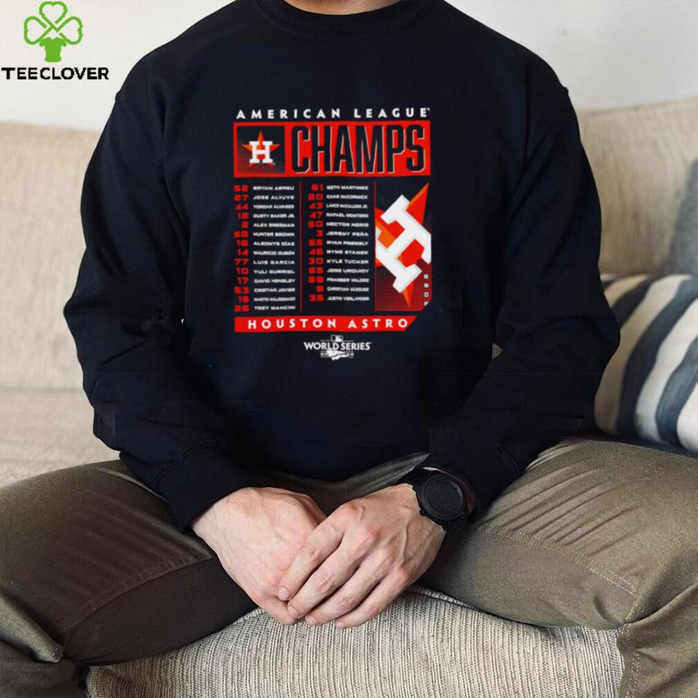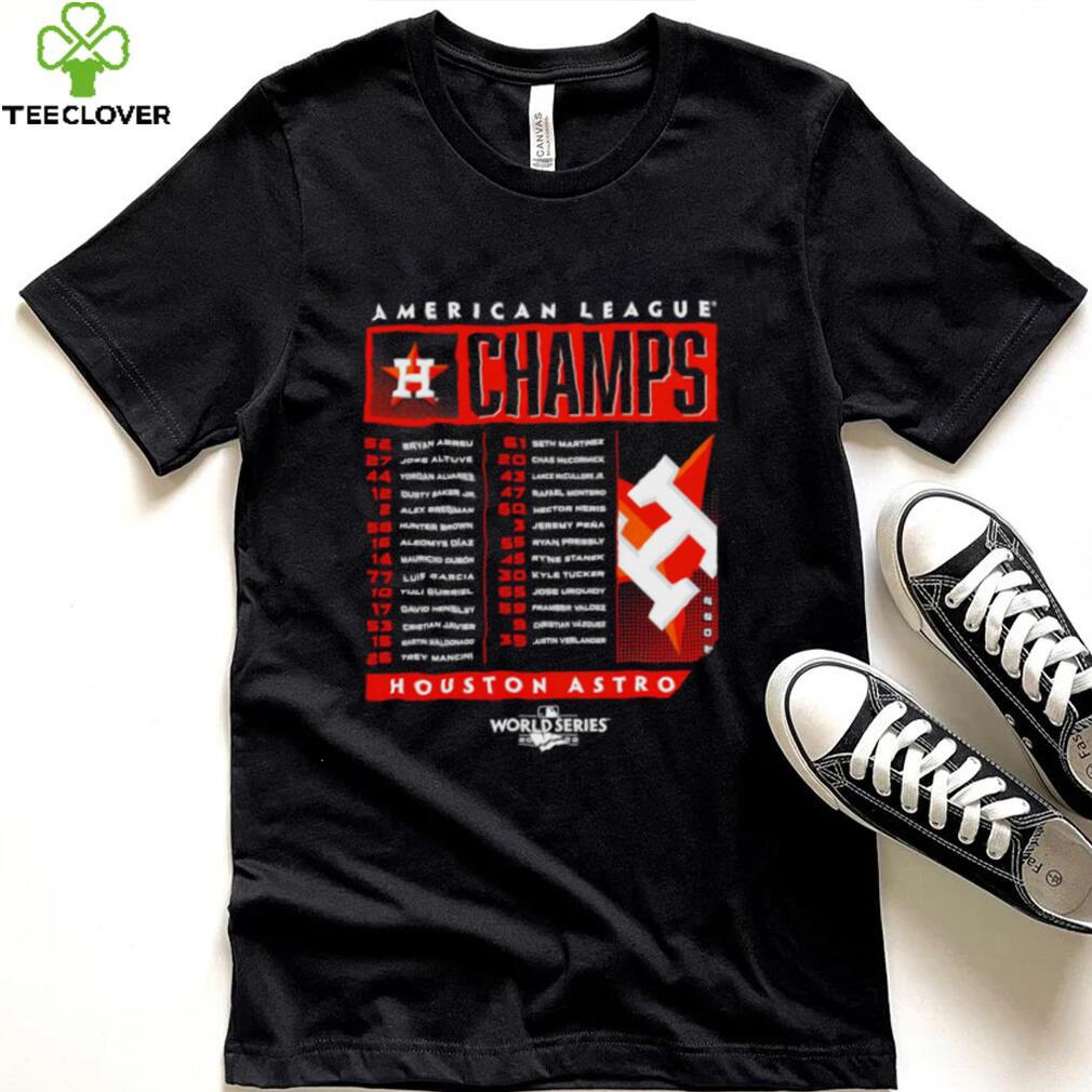 (Houston Astros 2022 American League Champions Roster World Series 2022 shirt)If you plan to pursue citizenship in the US, maybe you want to be a New England Patriot. If you like Edgar Allen Poe then maybe the Baltimore Ravens are for you.Maybe a favorite team from Houston Astros 2022 American League Champions Roster World Series 2022 shirtΒ back home in another sport can inspire you. If you are Tottenham fan then the South Carolina Gamecocks or Coastal Carolina Chanticleers are for you. Real Madrid fan? Then maybe the Minnesota Vikings. Player.