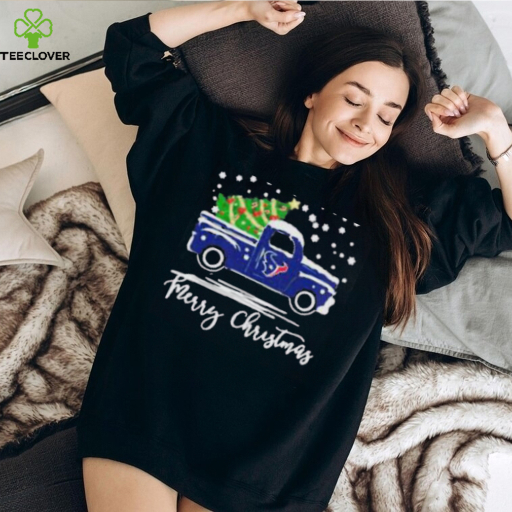 Best Houston Texans Car With Christmas Tree Merry Christmas Shirt