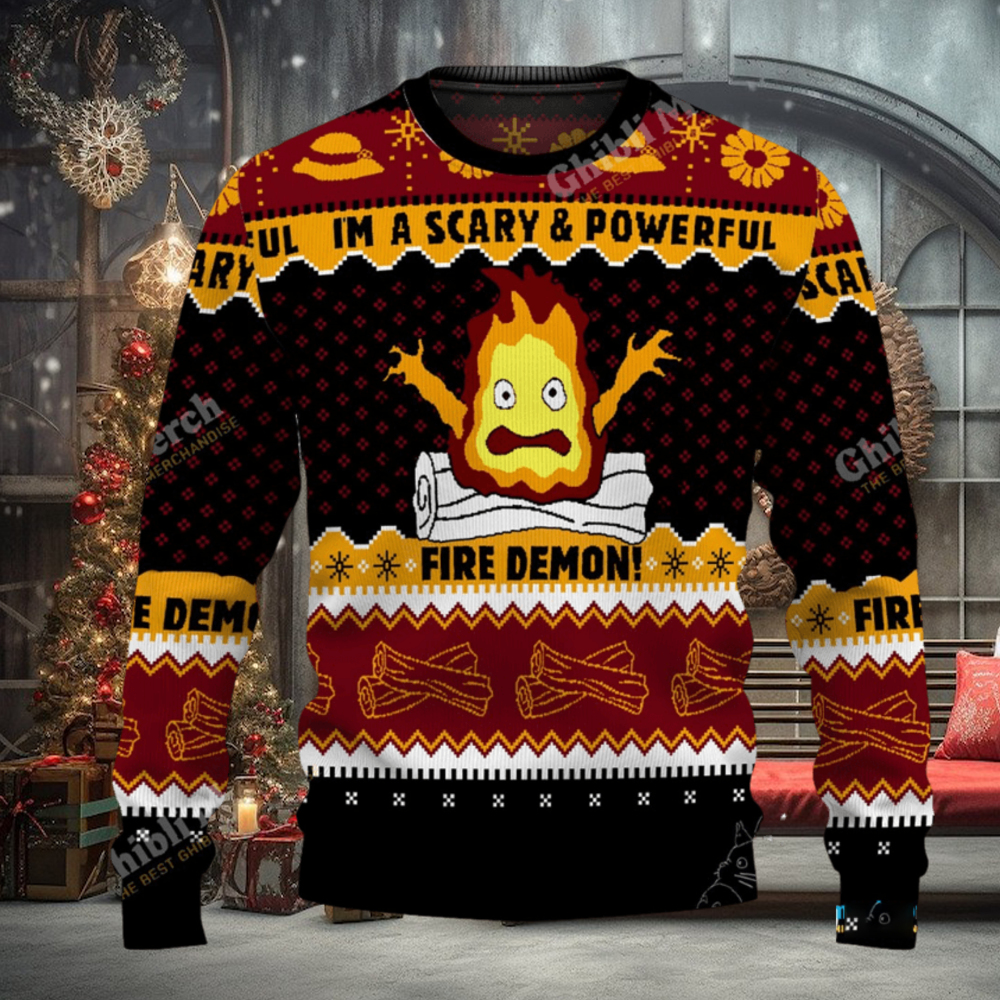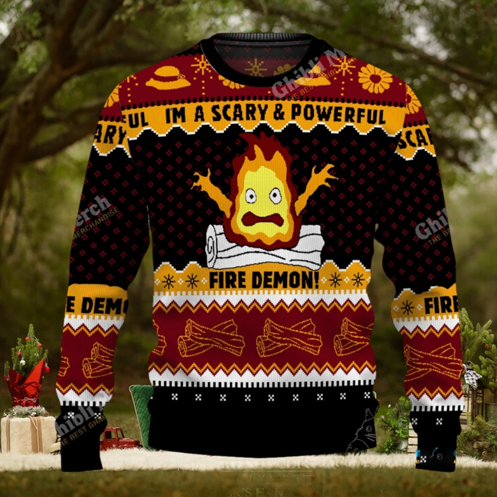 ()Howl’s Moving Castle Calcifer Fire Demon Christmas Sweater,