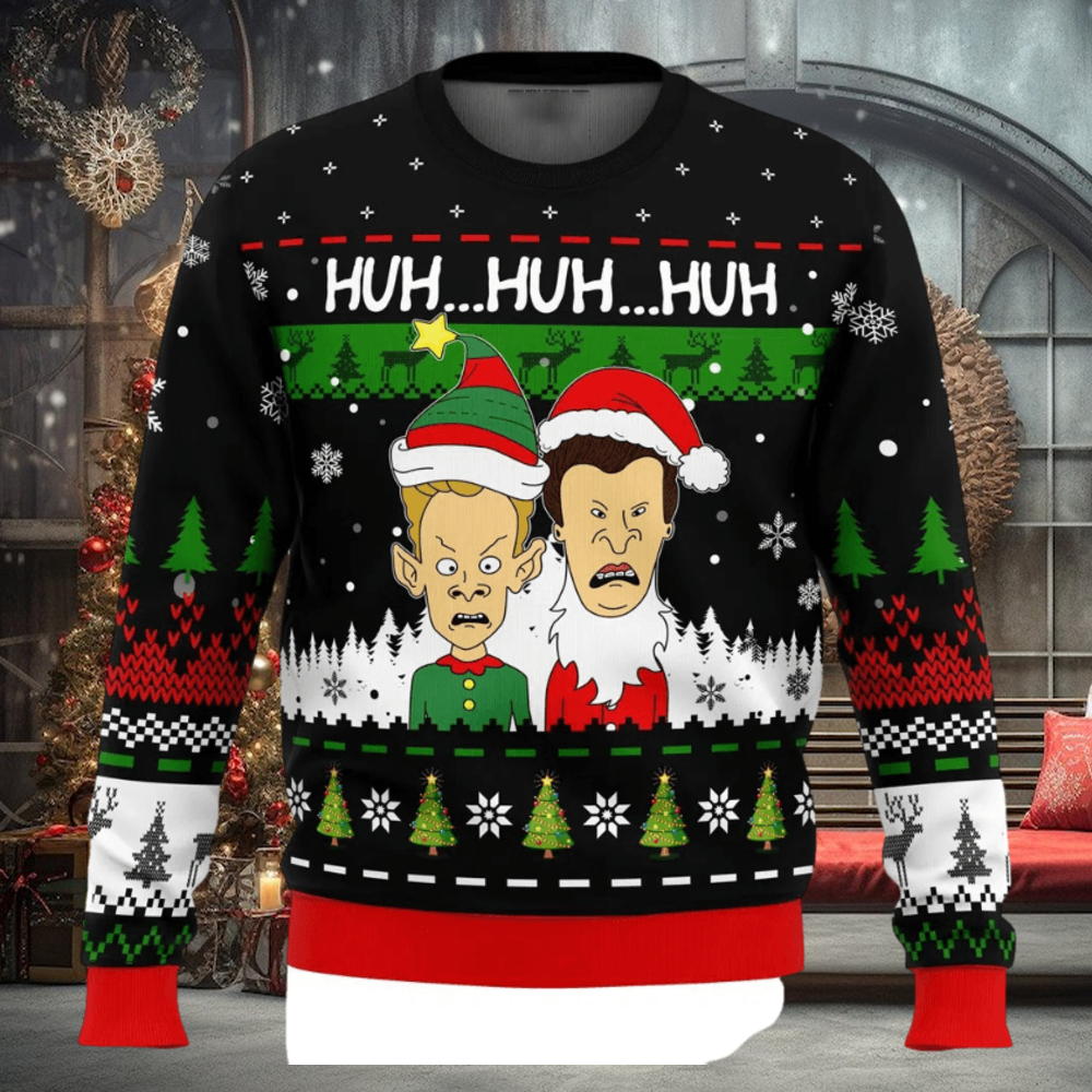 ()Huh…Huh…Huh… Beavis and Butthead Ugly Christmas Sweater,