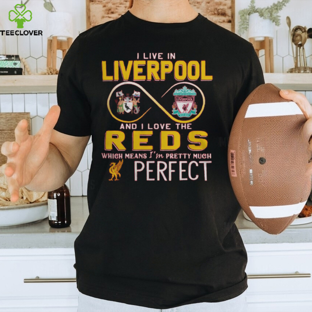 ()I Live In Liverpool And I Love The Reds Which Means I’m Pretty Much Perfect T Shirt, Hoodie, Sweater, Vneck, Unisex and T-shirt