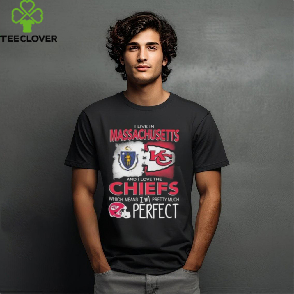 ()I Live In Massachusetts And I Love The Kansas City Chiefs Which Means I’m Pretty Much Perfect T Shirt