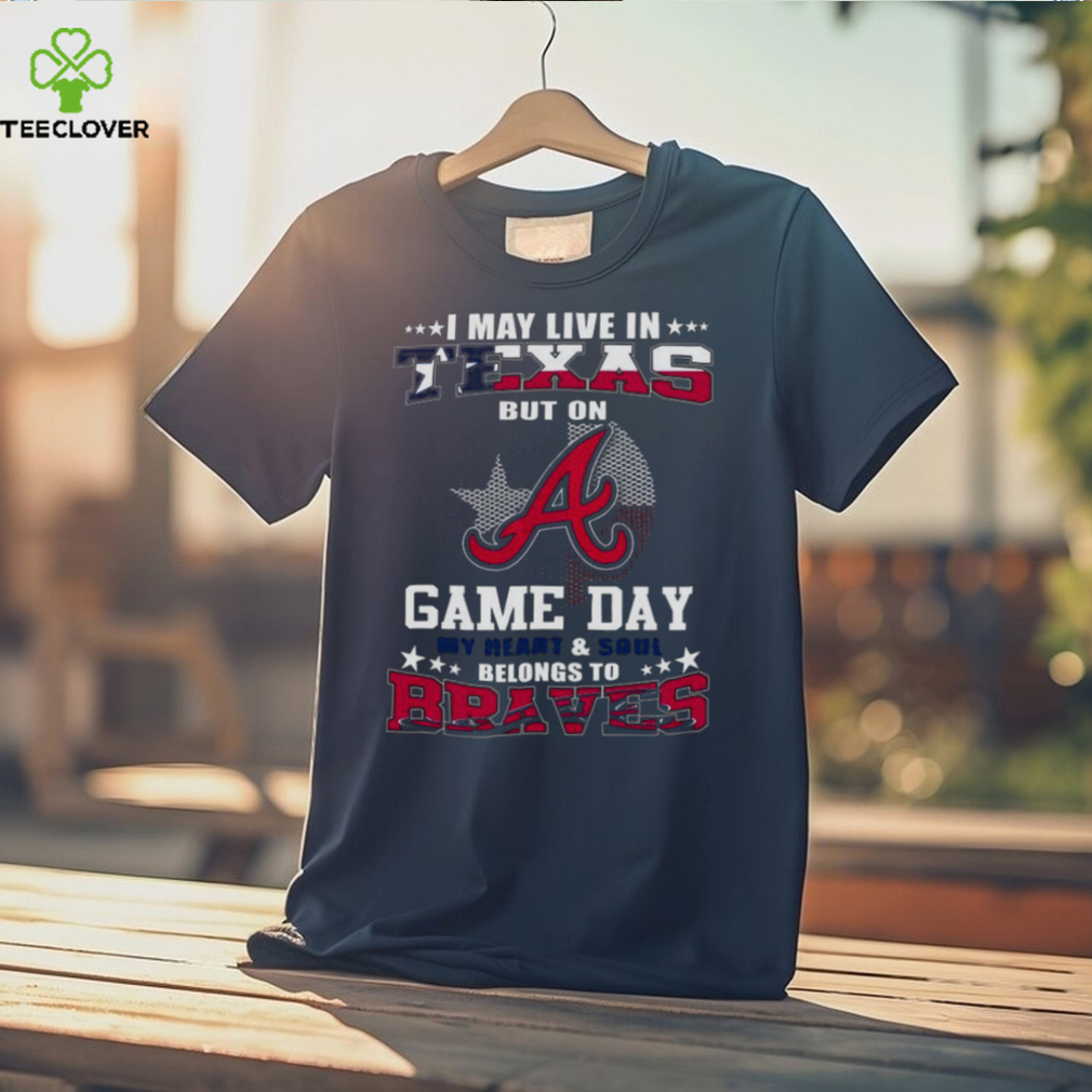 Best I May Live In Texas But On Game Day My Heart And Soul Belongs To Atlanta Braves 2023 Shirt
