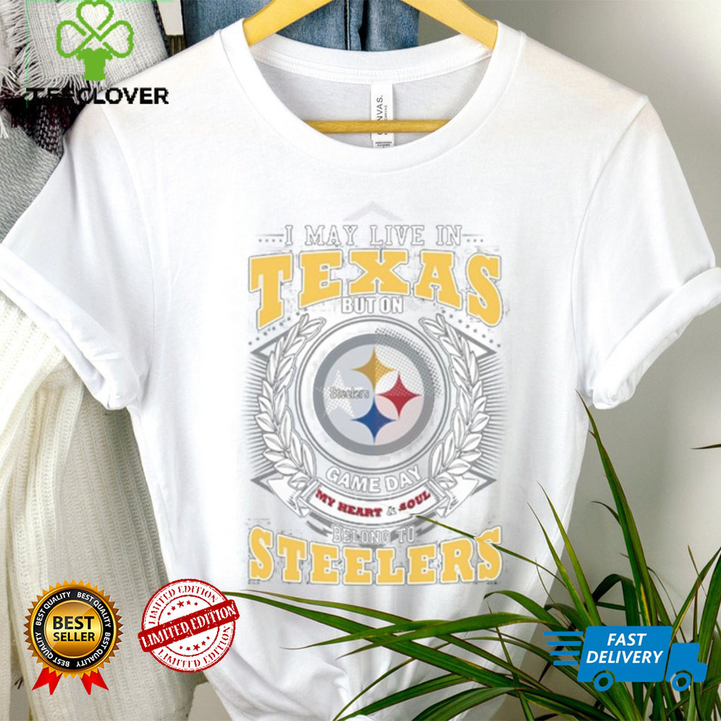 ()I may live in Texas but on game day my heart and soul belongs to Pittsburgh Steelers shirt