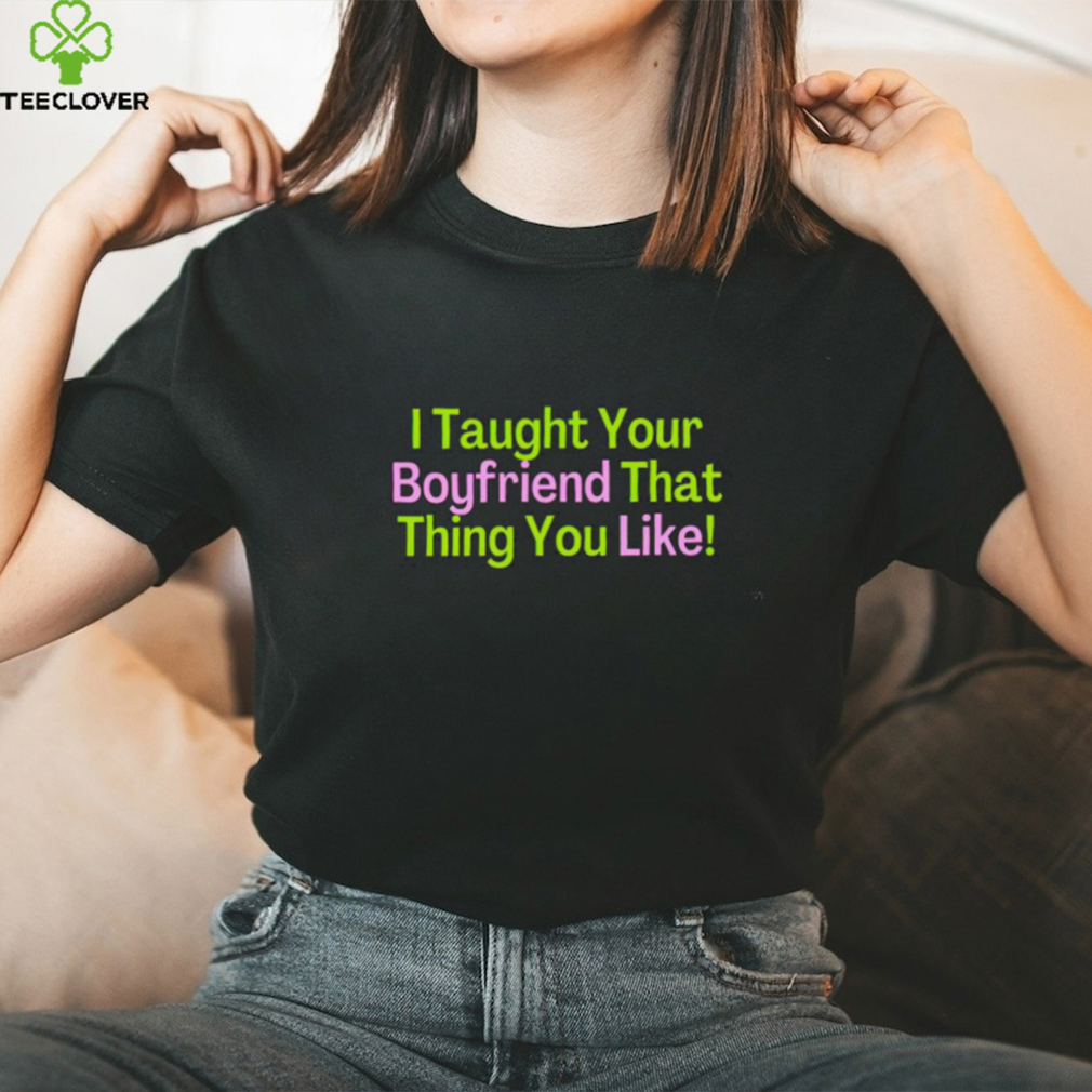 ()I taught your bf that thing you like shirt. Categories of this T-shirt is Limotees, I taught your bf that thing you like shirt from Dadyshirt ✓ Unique designs ✓ Large assortment ✓ Comfortable ✓ High-quality ✓ Easy to care for ✓ Available in a range of colours and styles for men, women ✓ Shop now ✓