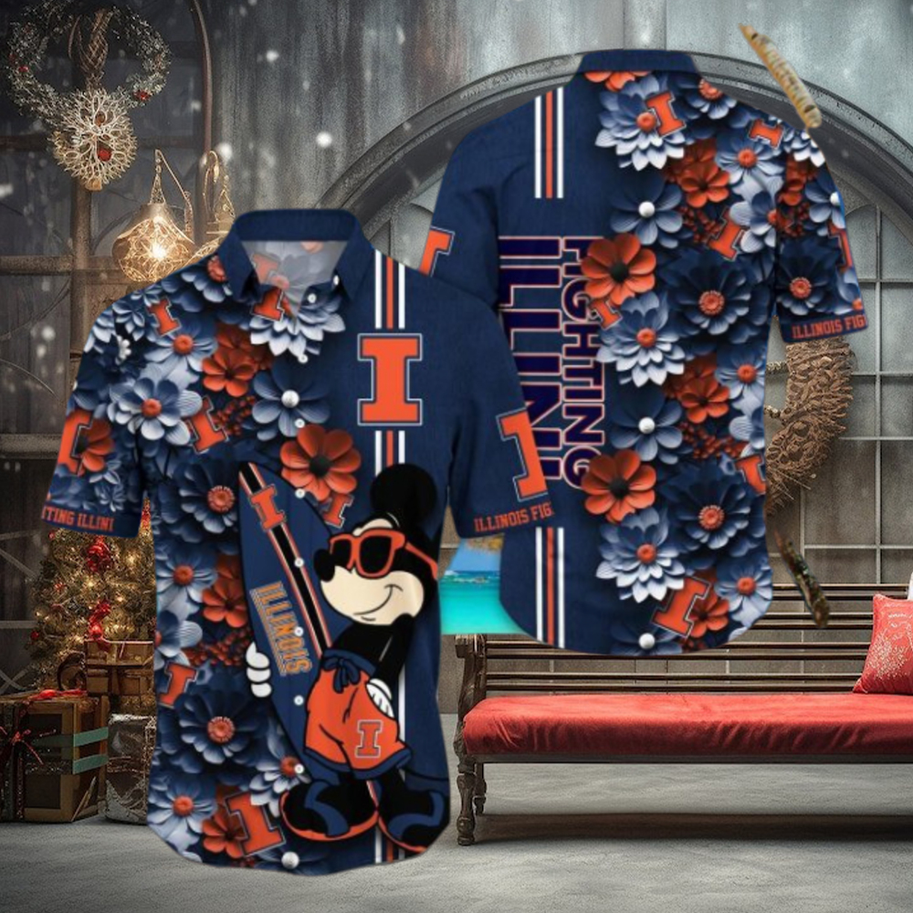 ()Illinois Fighting Illini Hawaiian Shirt Mickey Love Surfing Trending Summer Gift,