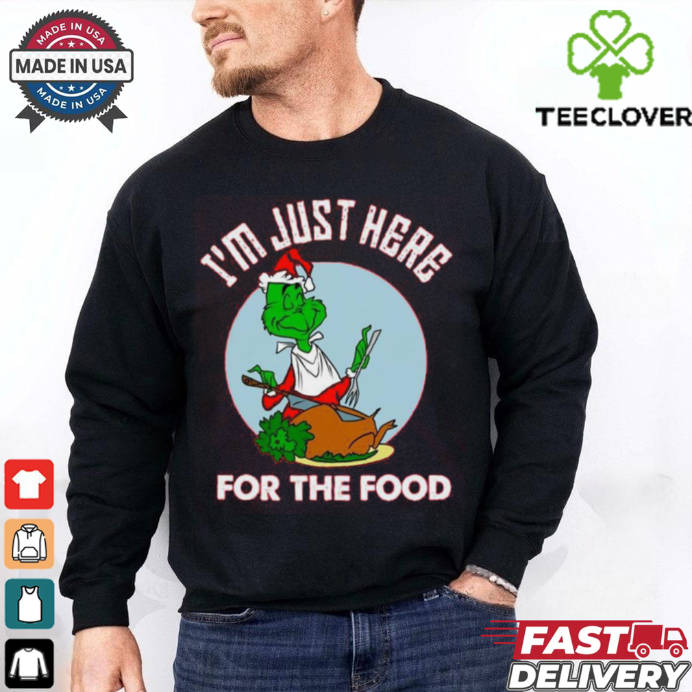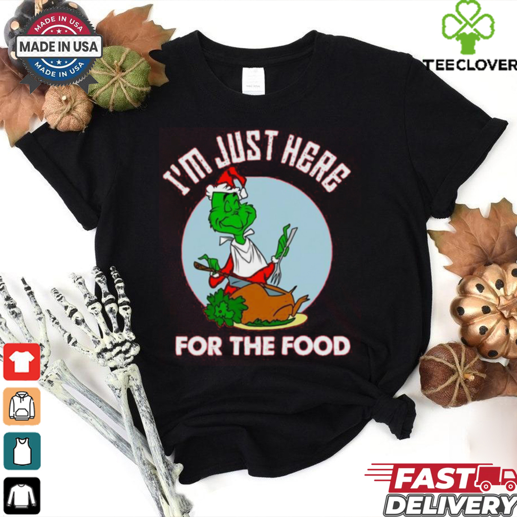 Historic scientists specify the 1st videotaped accident of the Im Just Here For The Food Dr Seuss How The Grinch Stole Christmas Shirt of the T-shirt to the United States happened during the course of World War One when United States soldiers commentated upon the sunny cotton underwears European soldiers were actually released as conventional outfit. The United States soldiers might certainly not have actually responded as promptly as their soldiers will possess just liked, yet the strongly useful as well as lightweight tee shirt would certainly very soon create its own method back to the conventional American individual.
