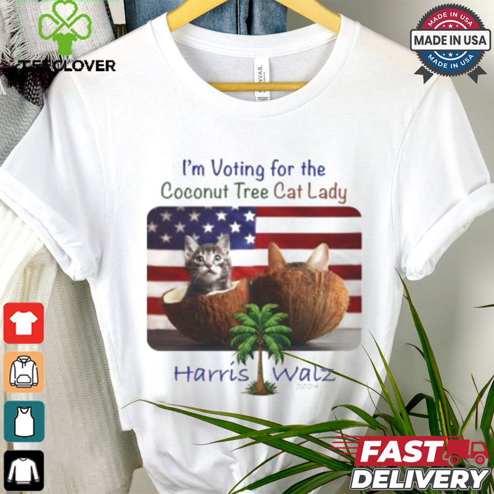 I‘m voting for the Coconut Tree Cat Lady Harris Walz 2024 American flag shirt