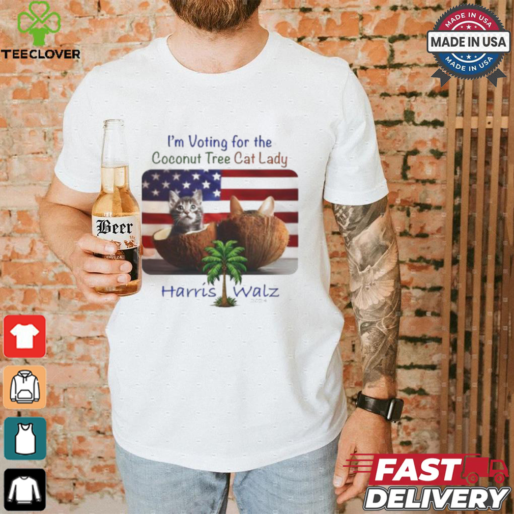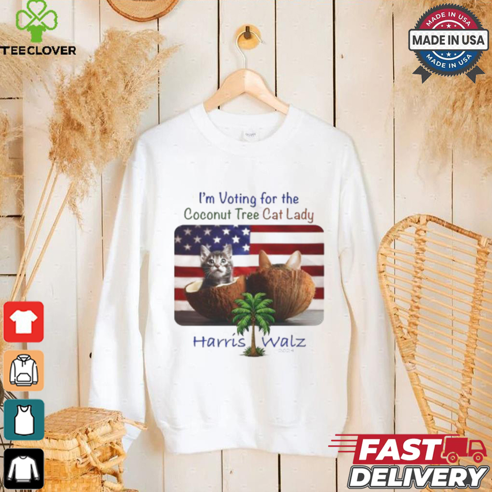 ()I‘m voting for the Coconut Tree Cat Lady Harris Walz 2024 American flag shirt