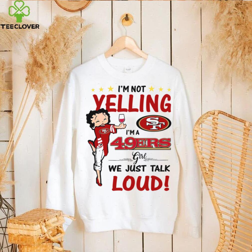 Simply look at Steve Jobs, the guy who ran Apple so well. He was a I’m Yelling I’m A 49ers Girl We Just Talk Loud Shirt believer in “natural” medicine, in fact he wouldn’t bathe since he felt this somehow or other weakened him but his fellow workers had lots of problems with this. He developed Pancreatic Cancer nothing may have done him any good but from the little that I’ve found on his case he may have had a rare case, like Ruth Bader Ginsberg, where prompt surgery may have saved him. He wanted to try some “natural treatments” first, he did, and you know how that turned out. Just because you know a lot about a lot of things don not assume that you know everything about everything. He was in many ways a brilliant man in most areas but not in the treatment of pancreatic cancer. The worst part is he got a liver transplant later on when he decided to try regular medicine, something that might have saved someone who really needed it. So sad.