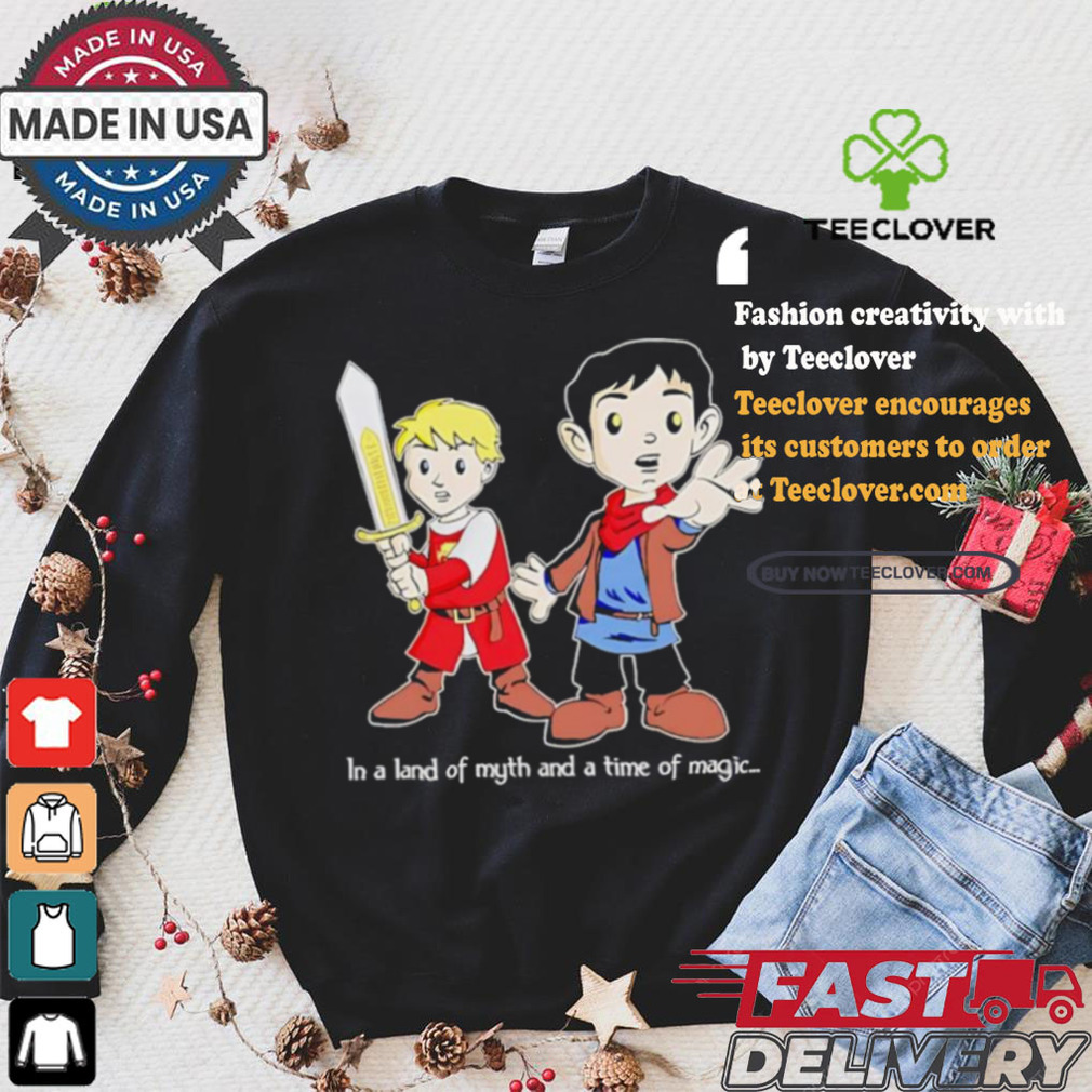 At that point I had a steady girl-friend, but also a In a land of myth and a time of magic merlin shirt good friend Robin. I was suppose to meet my girl-friend on Christmas Eve, but around 7:00 PM my friend Robin calls me up and tells me her mom has been bummed about about Christmas and there are no decorations at their home. She asked me, “Will you go get a Christmas tree with me?” That put me in a real dilemma with my girl-friend, but sometimes you have to do the right thing…so I called my girl-friend and told her what I had to do, she was cool. My friend Robin had lost her father when she was very young, and her mother never remarried her entire life. I sort of knew why because one day while over Robin’s house, she had a box of letters that her dad had written to her mom while he was a soldier, and we read them together…very old letters, but expressed who he was.