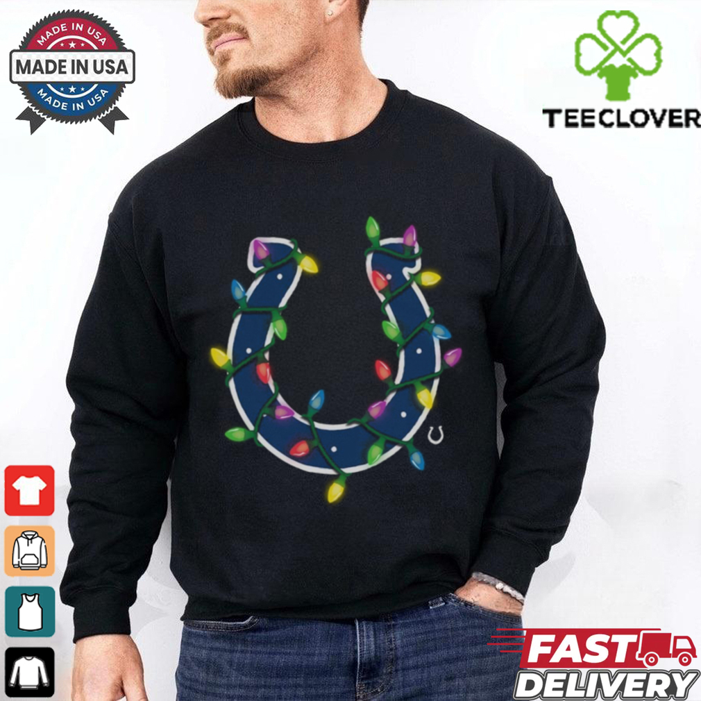 Traditional ready-to-wear / luxury brands generally present at Indianapolis Colts Primary Logo Holiday Lights T Shirt weeks around the world including New York, London, Paris, Milan, Seoul, and Tokyo, among others. Buying teams or representatives from stores attend the shows to see the collections. The following week, brands open their showrooms where buyers from the stores come in to see specific pieces in detail and place their orders. If a representative from the store can not attend, it is technically possible to do this all remotely. This happens a minimum of twice a year for Spring/Summer and Fall/Winter collections, but can be much more frequent as pre-collections become increasingly popular. Brands compile the orders from all the stores and spend the next multiple months producing the quantities of pieces ordered.
