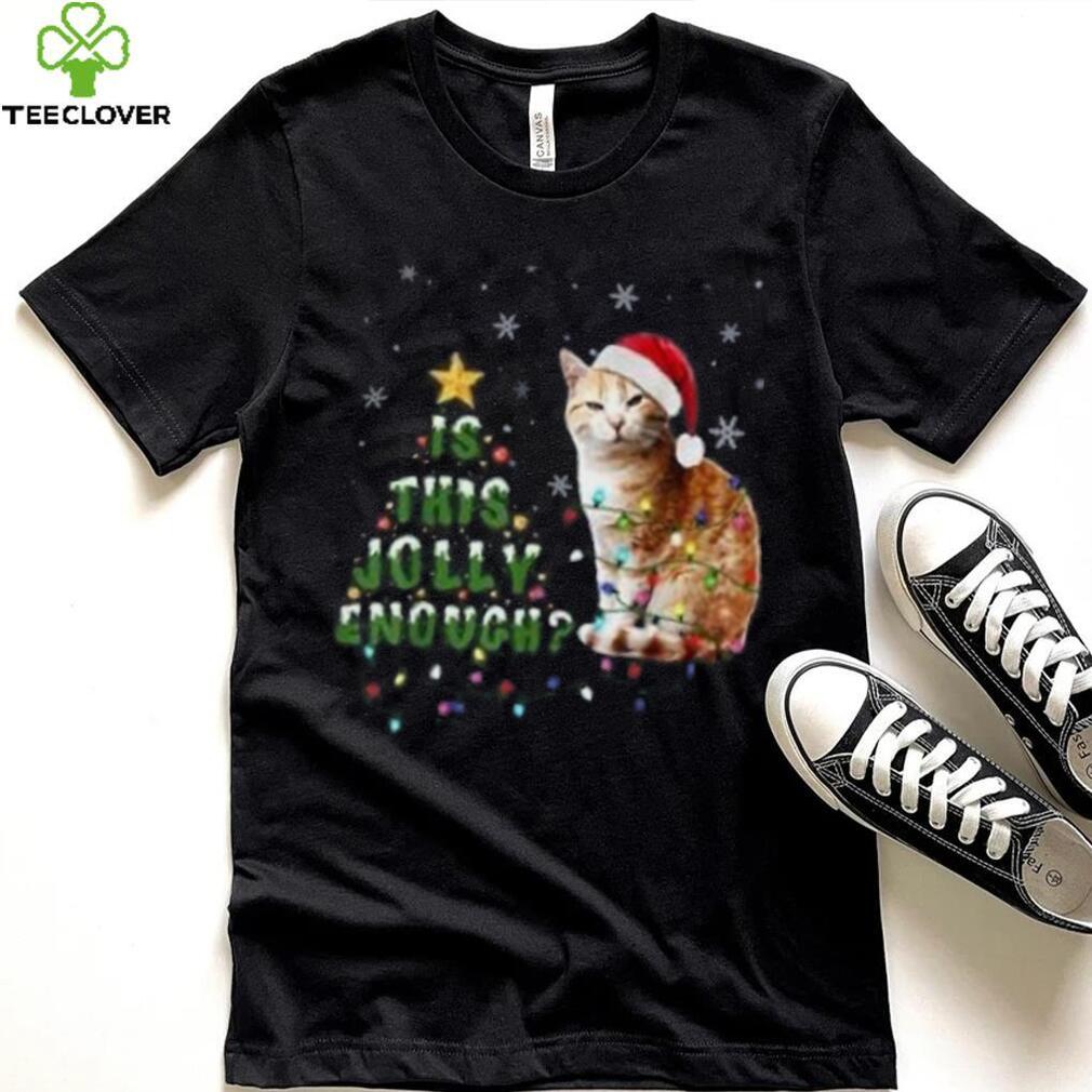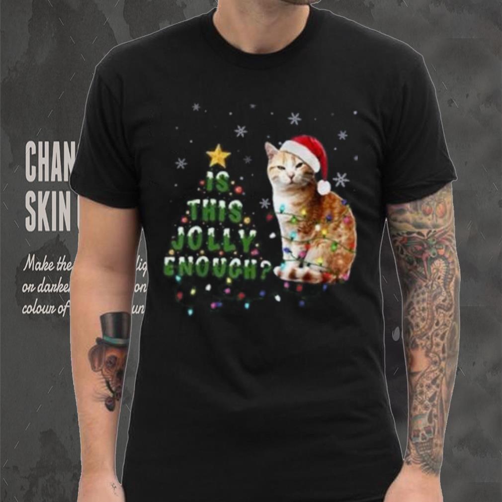 ()Is This Jolly Enough Santa Cat Light Christmas Shirt