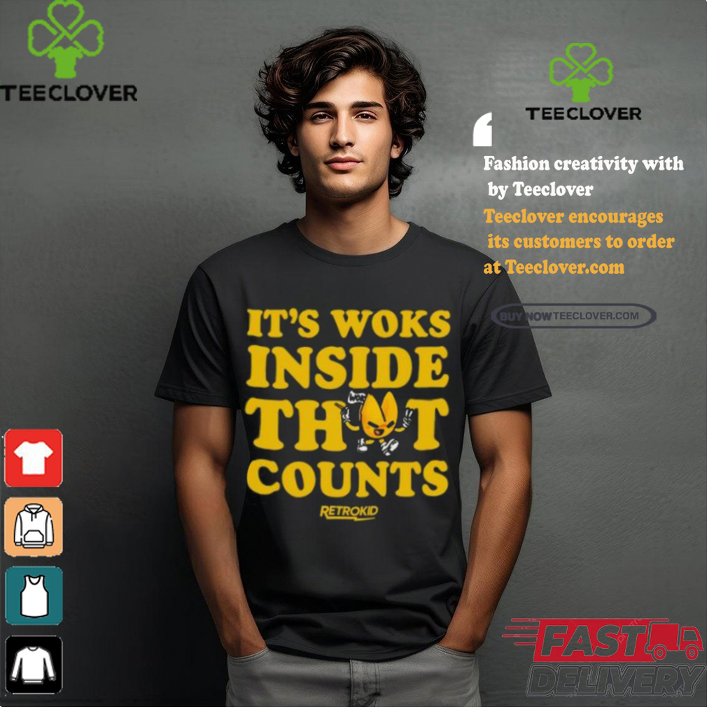 My cat Exodus, rest his soul. Upon first It’s Woks Inside That Counts Retrokid Shirt him at a hot flea market I couldn’t unsee him. All the other cats in the kennel played and jumped around like kittens do, but back in the corner was a tiny black kitty with his back to the front of the cage. After much coexing “kitty, here kitty” and getting the attention of every other cat, he remained almost lifeless, refusing to feed into the hype of humans. I pushed stuff out of the way obsessed to see his kitty face. Was he even alive? It was so hot out and there were so many kitties in that cage, what if he had died of heat exhaustion!