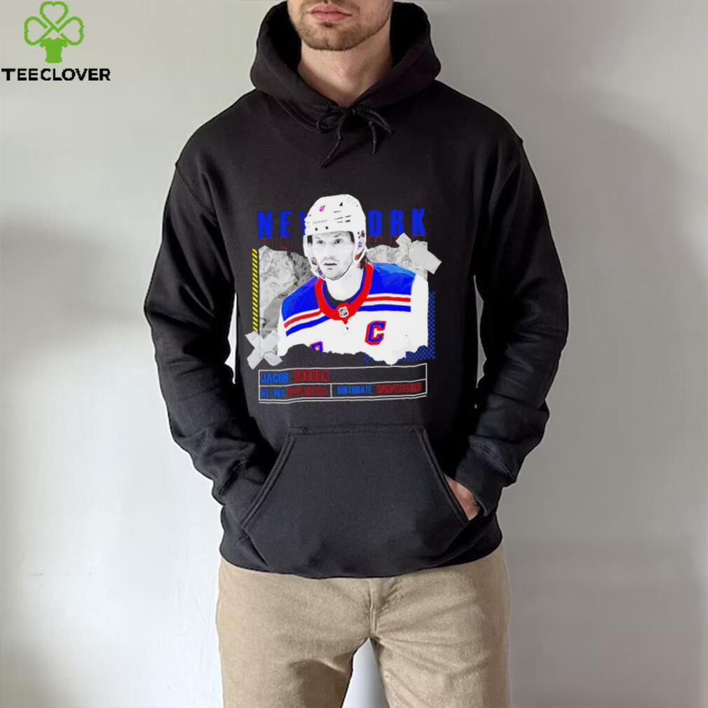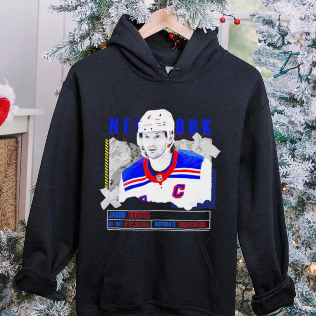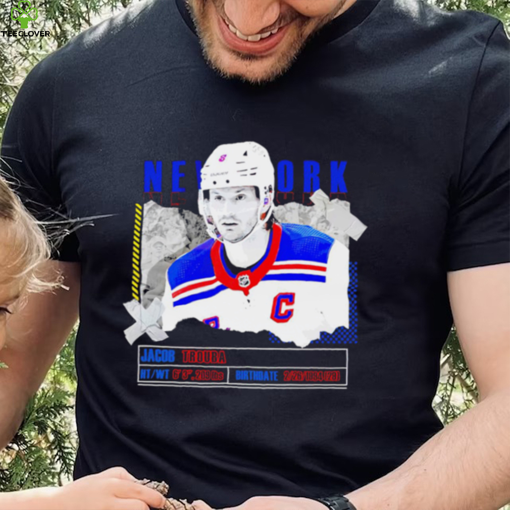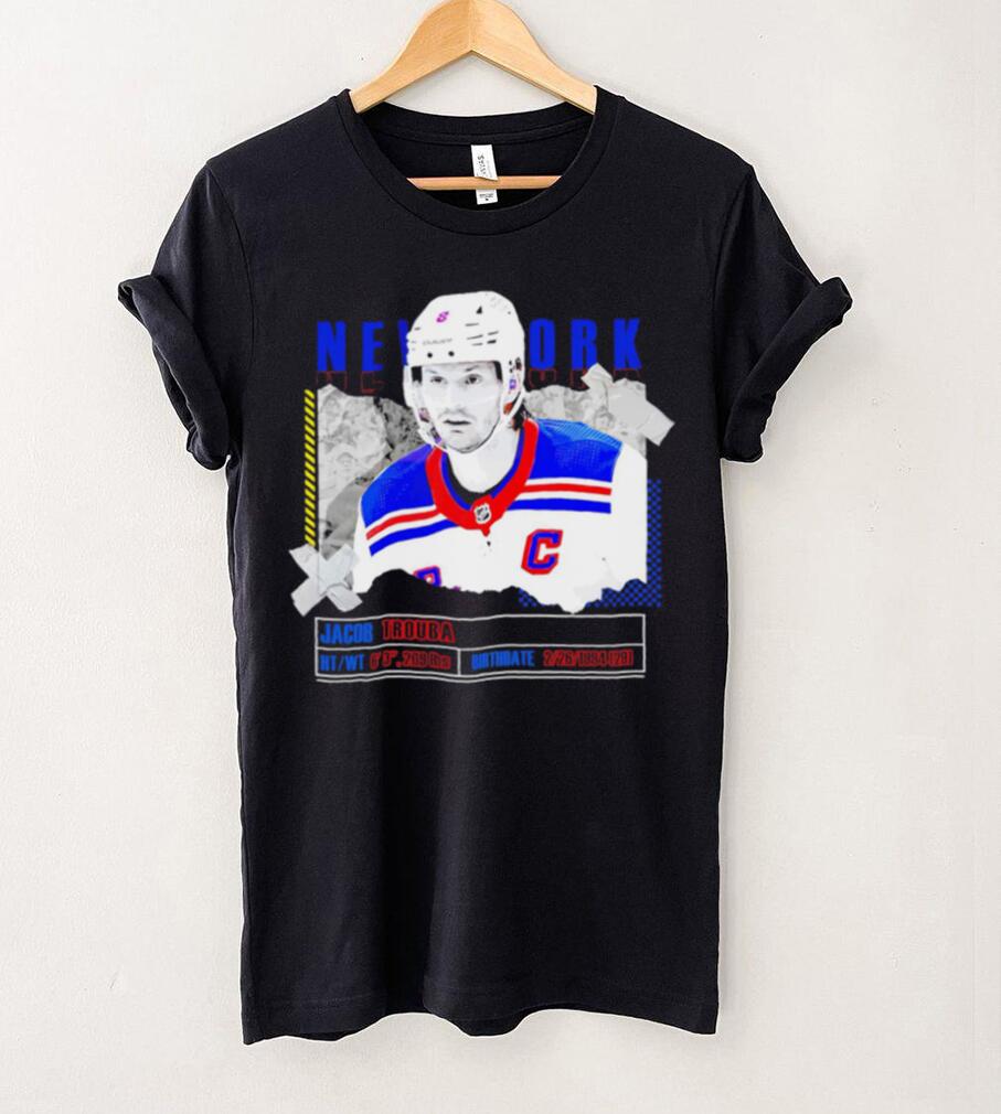 The Jacob Trouba New York Rangers ice hockey player information paper shirt to answering your question is experience. We exist to experience; we know we exist because we experience our own existence. The second key is observation. We observe our existence, our experience. We witness, record, and reflect upon our experience. The third key is intention. From observations of our experiences, we build a theory of “reality”, and make choices to act or not act based on that theory. We form an intention to create a specific experience that we want to observe. Now we have a sufficient solution to the problem. Experience, observation, and intention together create reality. They cannot exist without each other. None is more fundamental than the other, and none can be removed without destroying the others. Experience, observation, and intention: the grand experiment. We exist to try things, experience them, and observe the result. There is no meaning beyond that; when we are gone, all those things are gone too. We should use the little time we have to make as many experiments as possible. We have been blessed with the opportunity to experience, observe, and intend, and we should not waste it.