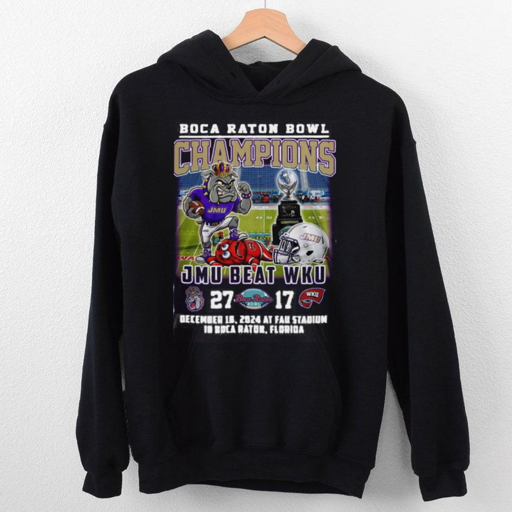 James Madison Dukes Beat WKU Boca Raton Bowl Champs 2024 Hoodie T Shirt hoodie, tank top, sweater and long sleeve t-shirt: best style for you